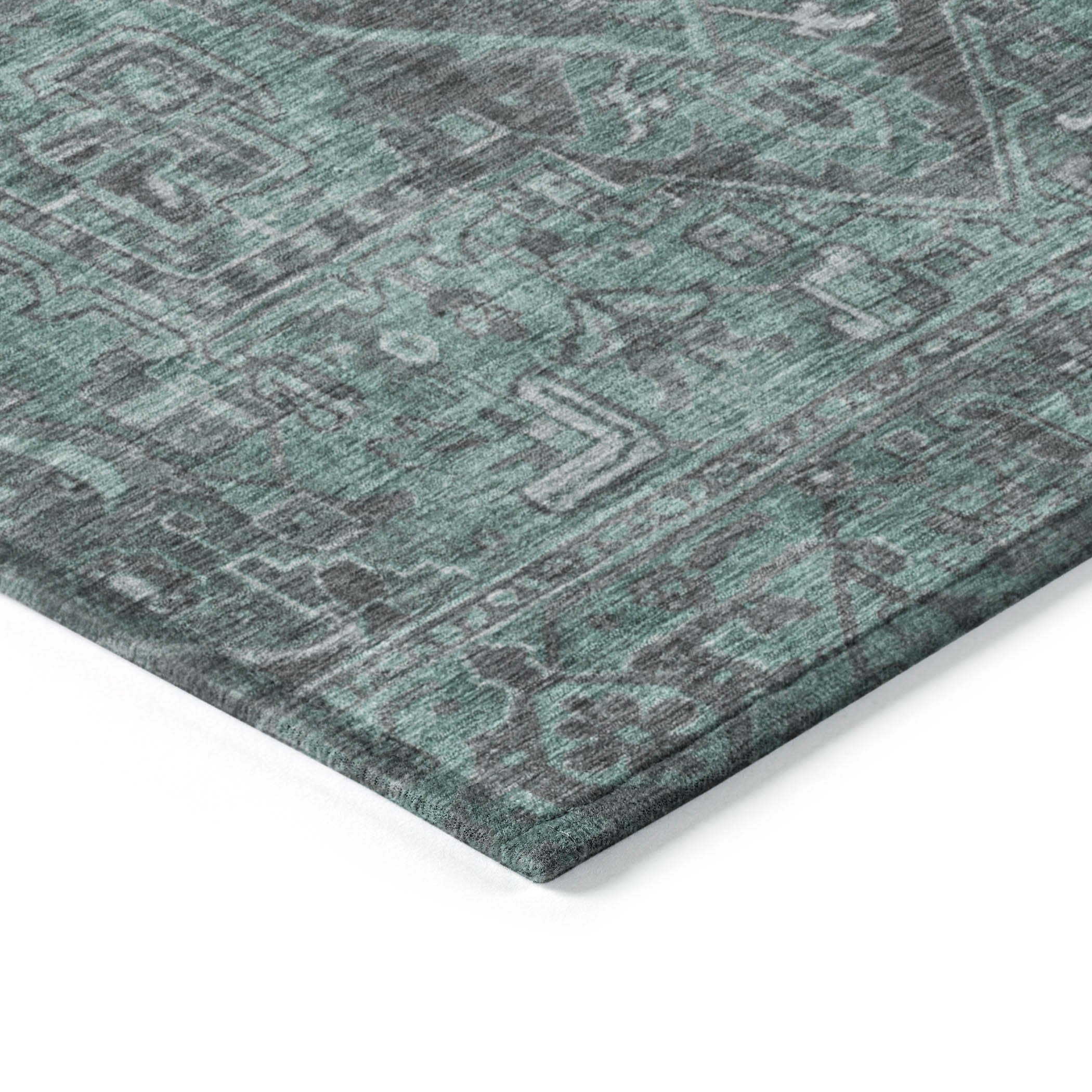 8' Round Turquoise Round Oriental Washable Non Skid Indoor Outdoor Area Rug