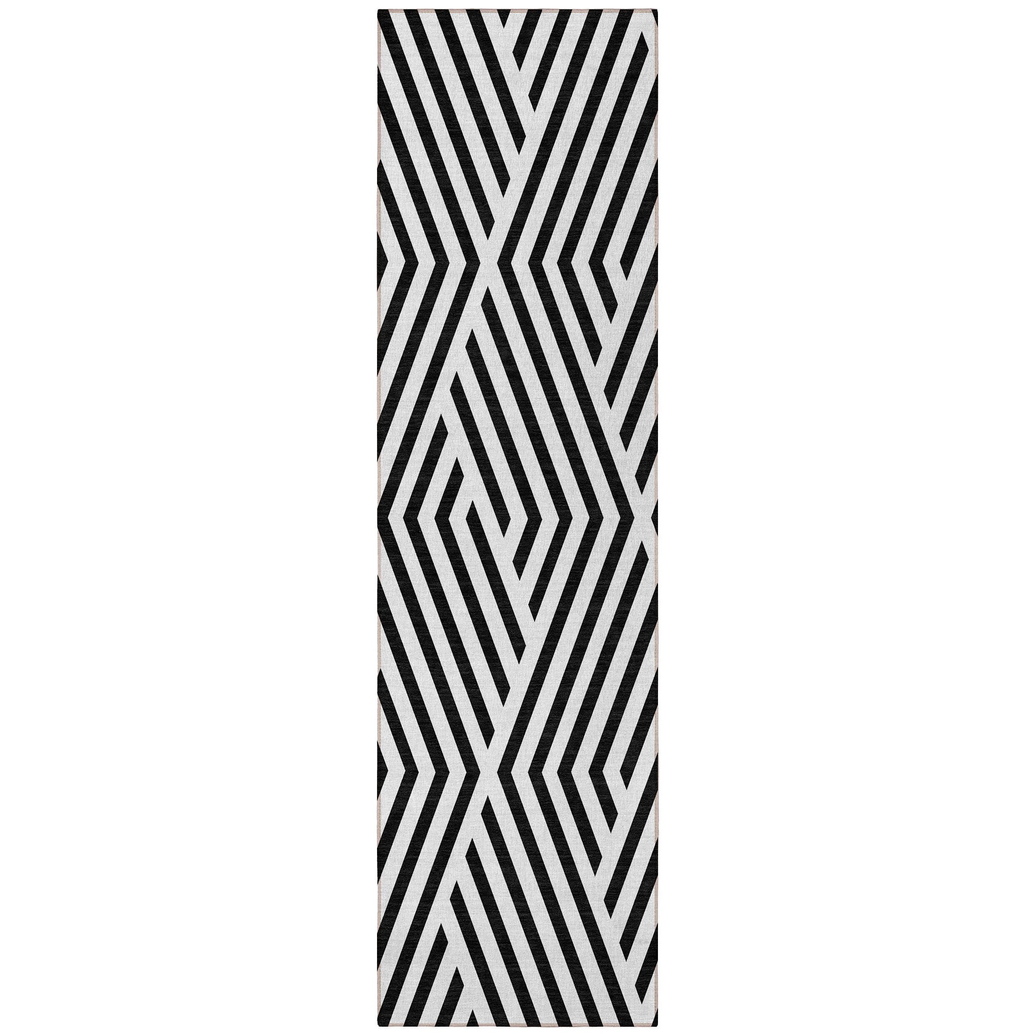 8' Runner Black and White Geometric Washable Non Skid Indoor Outdoor Runner Rug