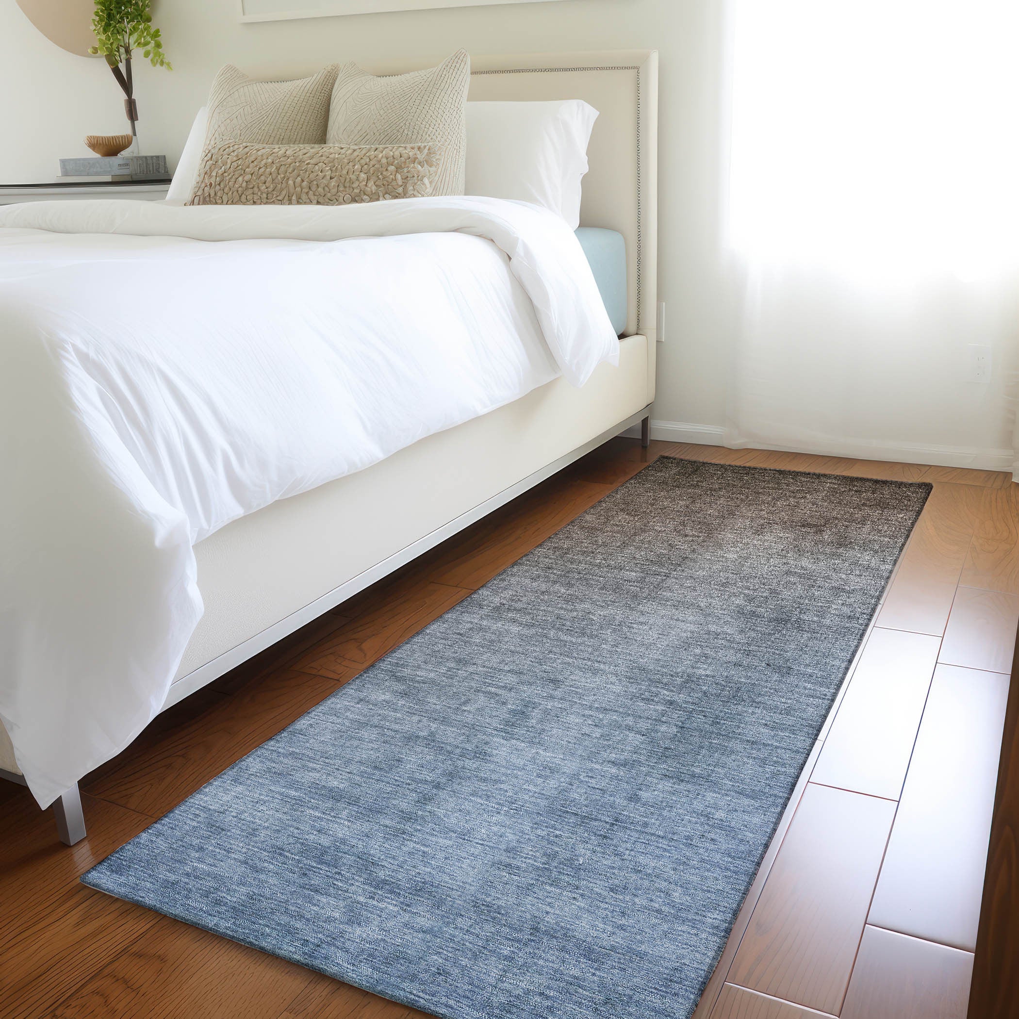 Set an inviting tone in your space with this 8-foot runner blue and green ombre washable stain...