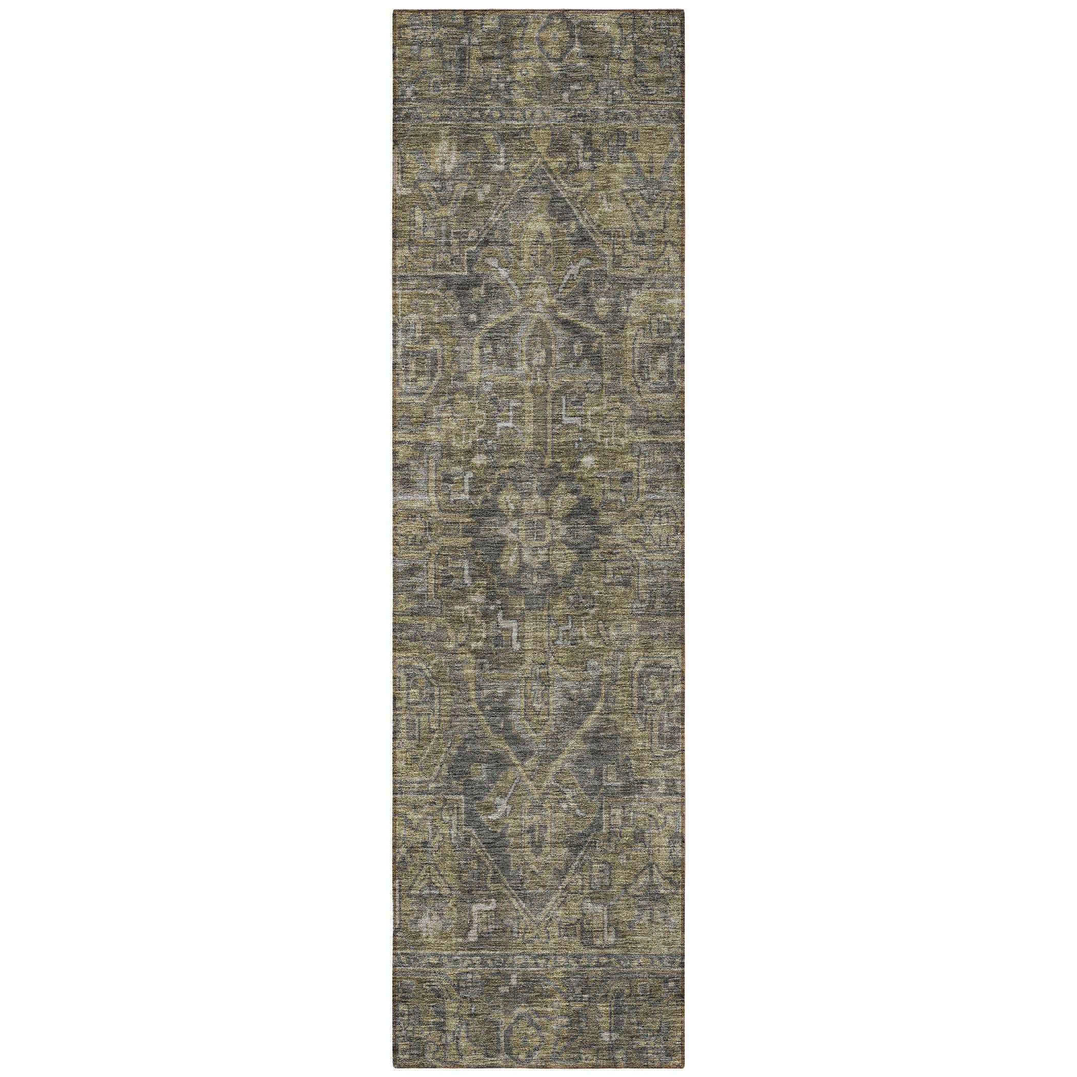 This 8-foot runner dark moss green and gray oriental washable stain resistant non skid indoor outdoor runner...