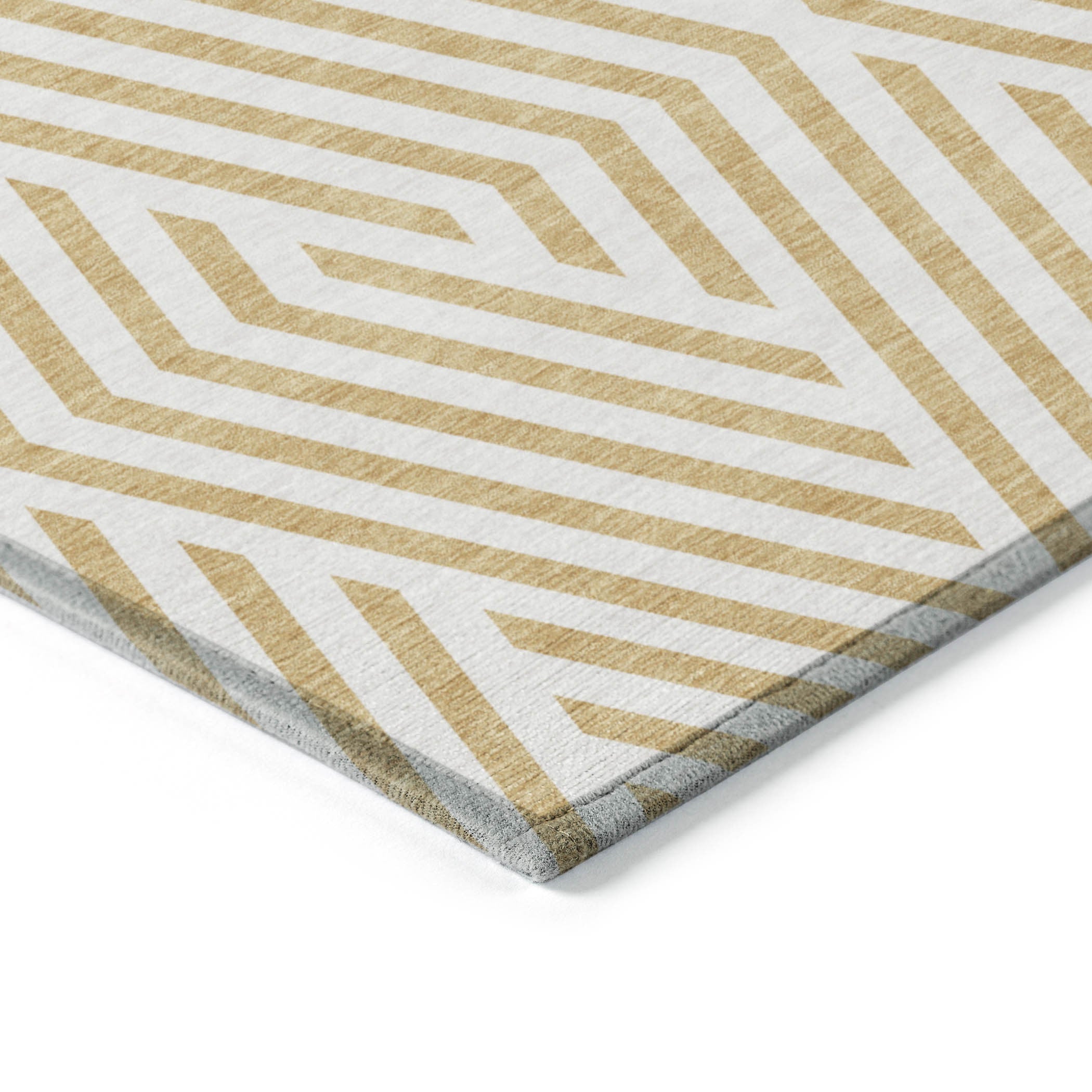 8' Runner Gold and White Geometric Washable Non Skid Indoor Outdoor Runner Rug