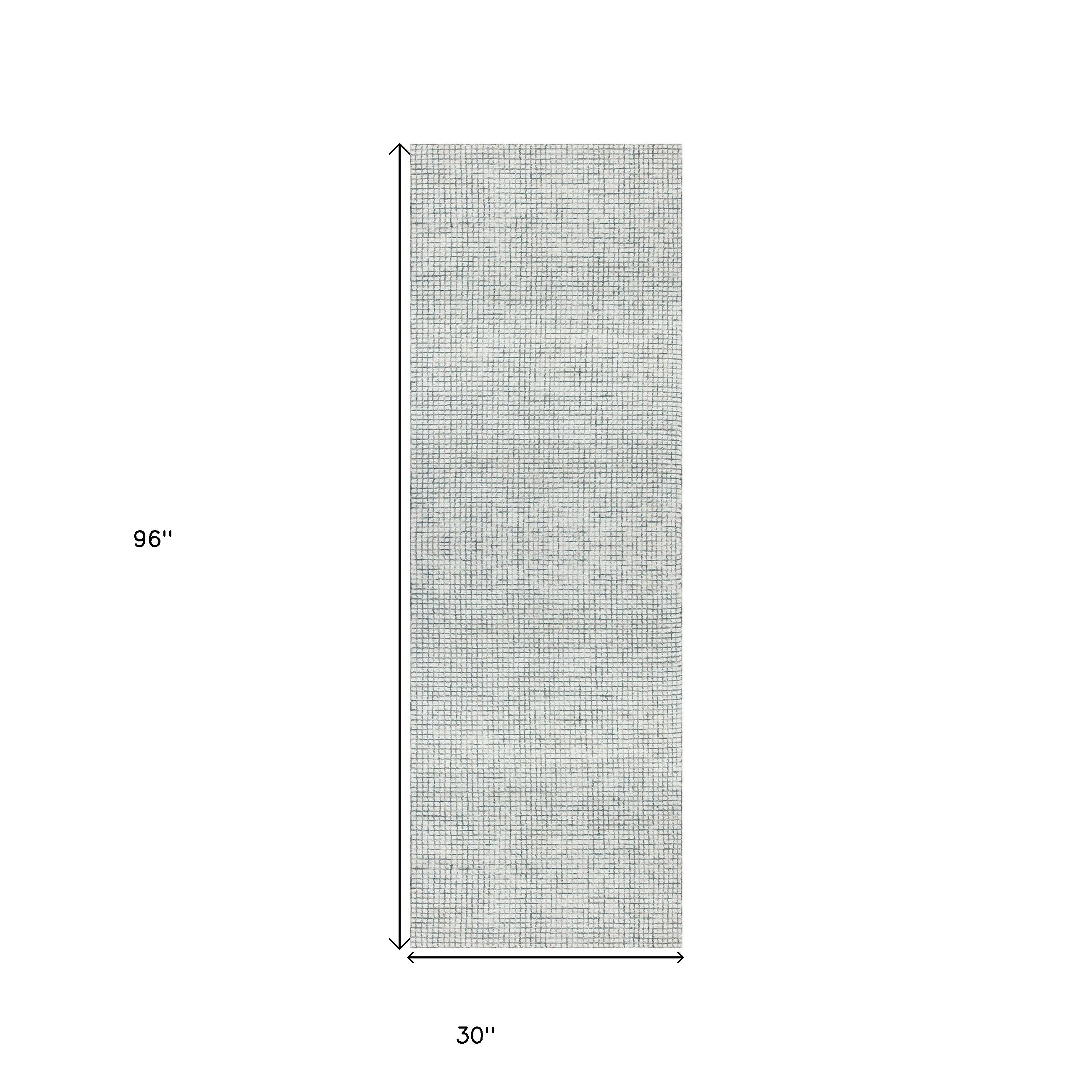8' Runner Gray and Ivory Wool Checkered Hand Hooked Runner Rug