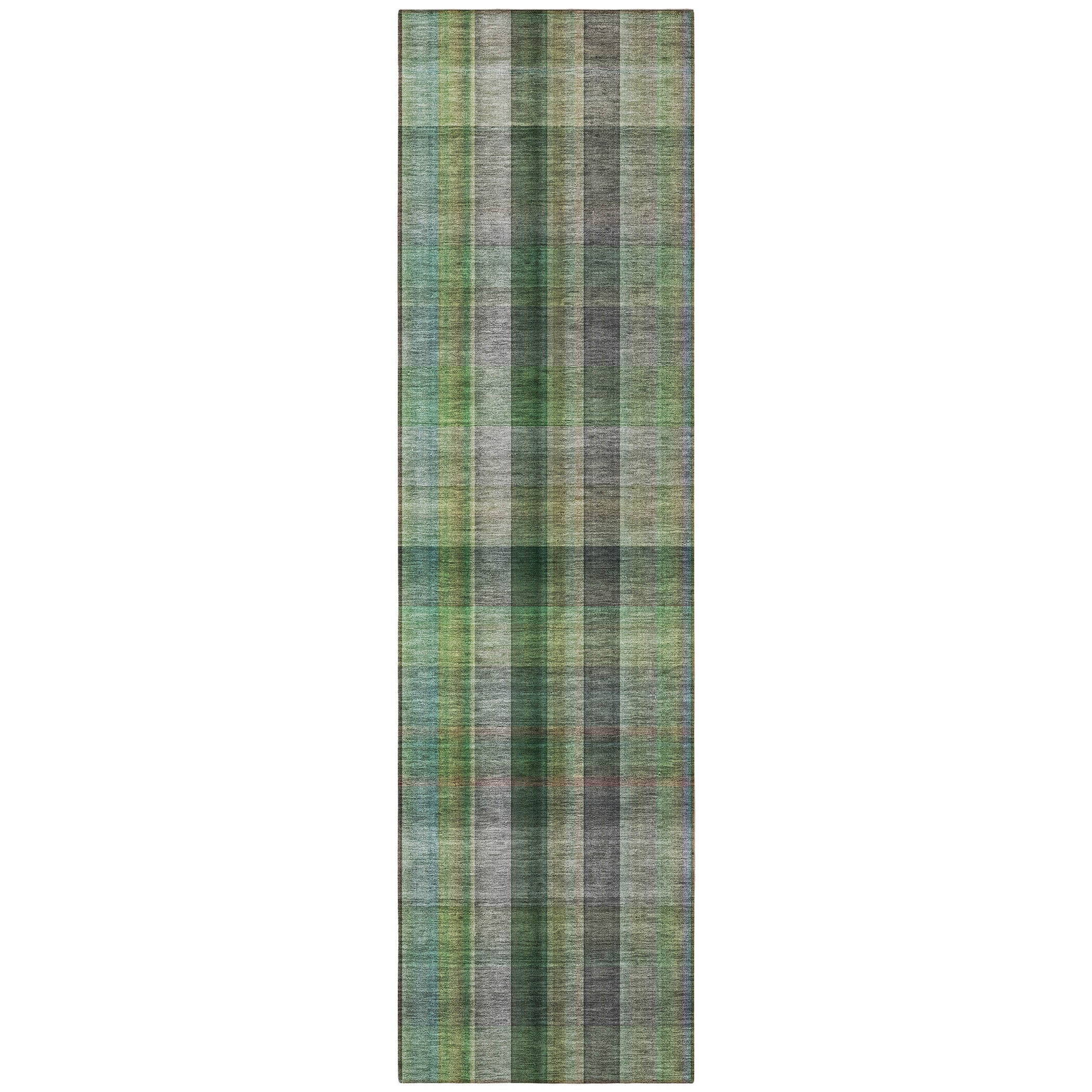 Add great coloration and comfortable texture to your space with this 8-foot runner green plaid washable stain...