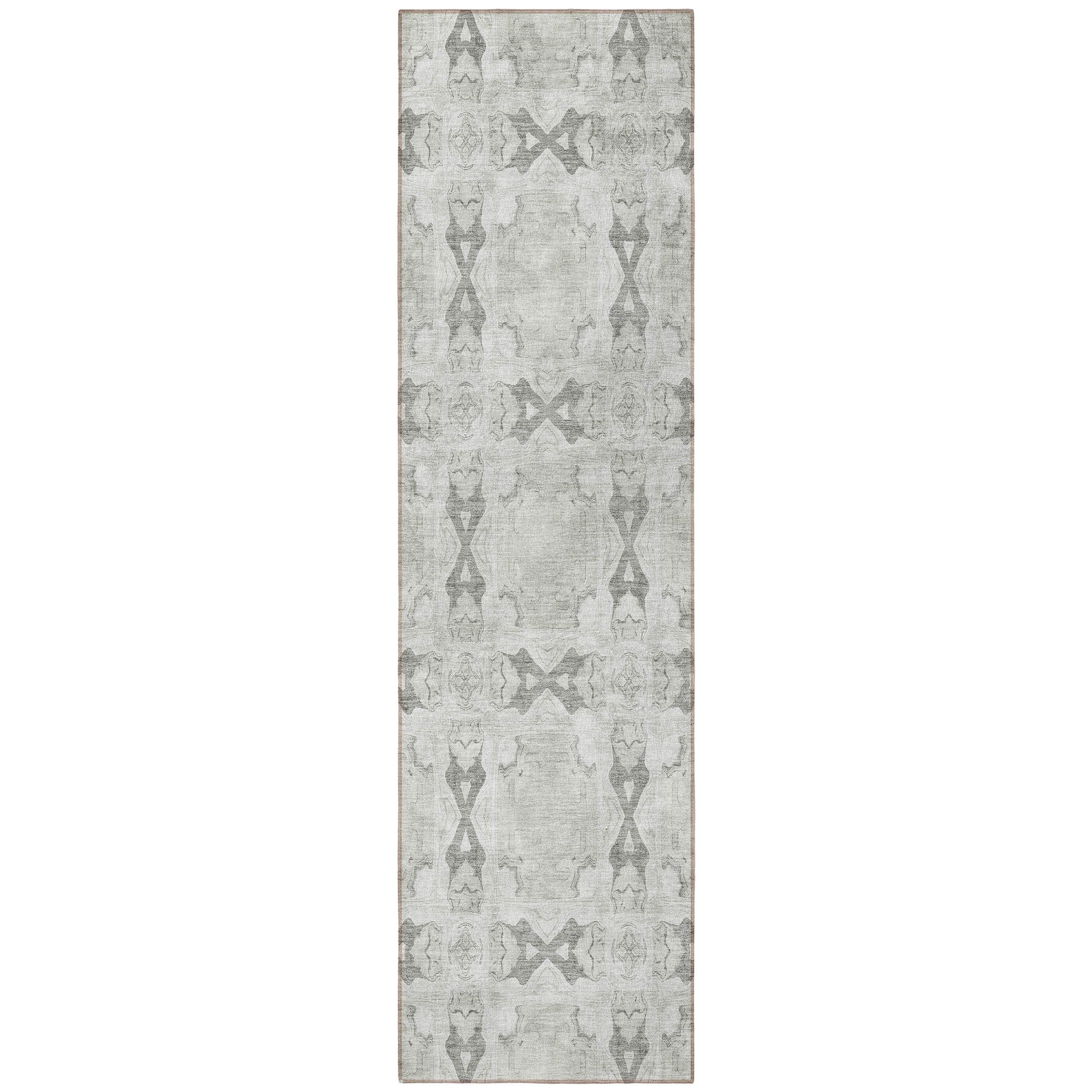 8' Runner Ivory and Gray Floral Medallion Washable Non Skid Indoor Outdoor Runner Rug