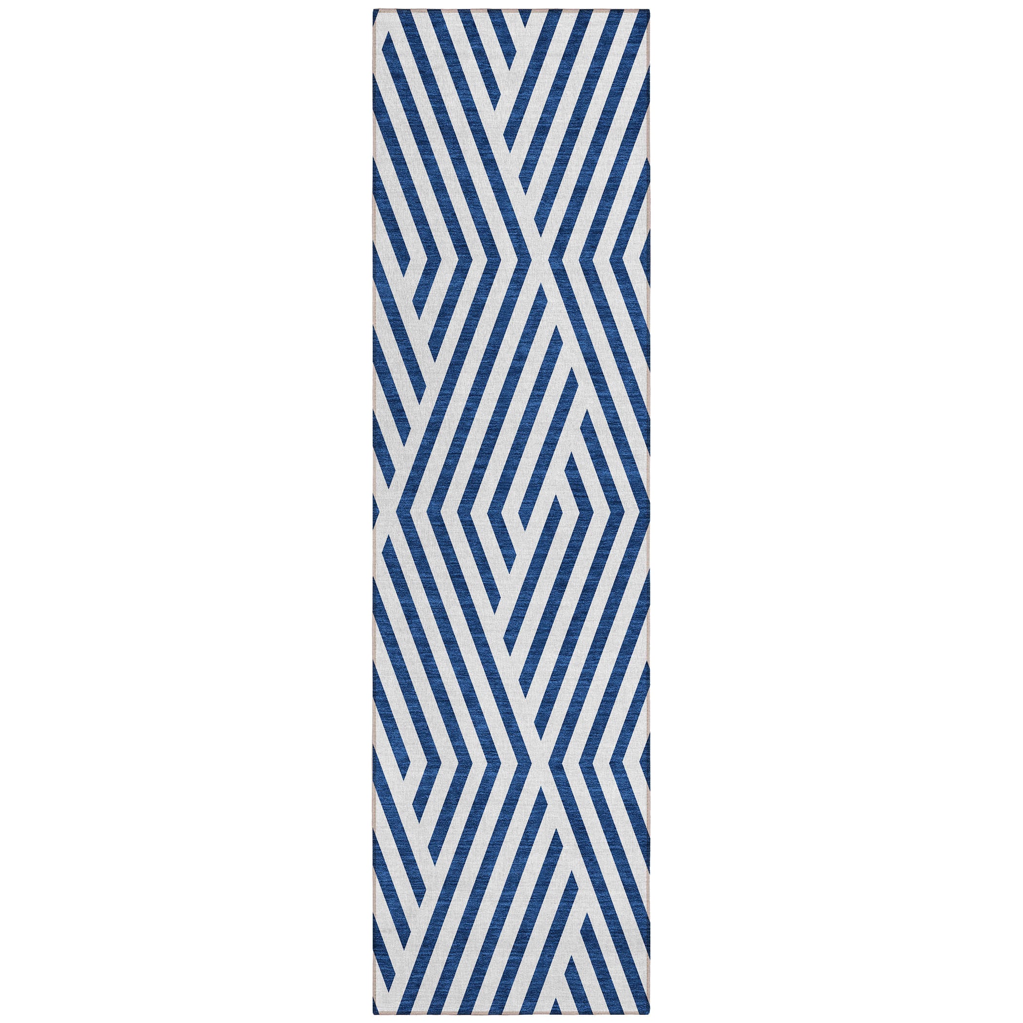 8' Runner Navy and White Geometric Washable Non Skid Indoor Outdoor Runner Rug