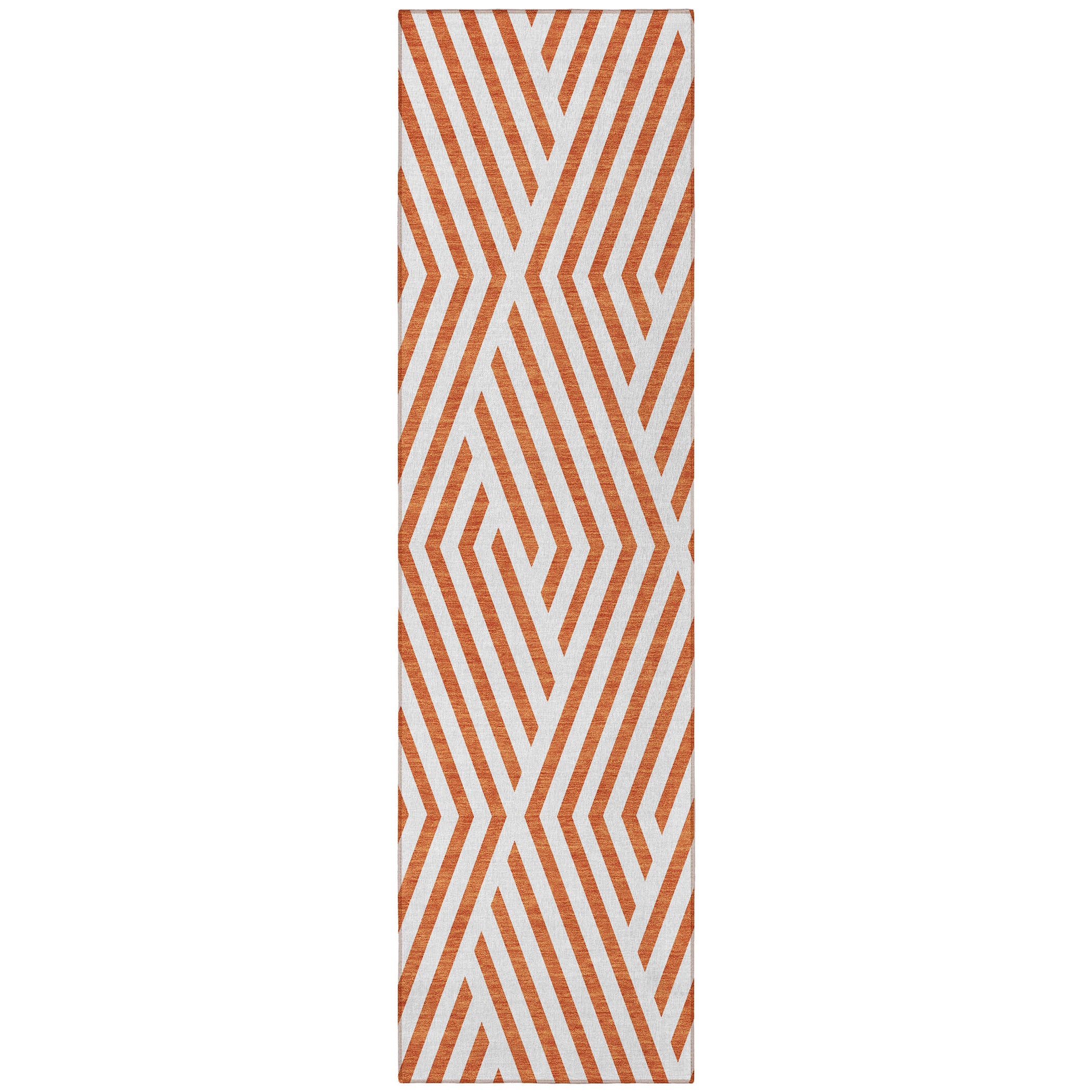 8' Runner Orange and White Geometric Washable Non Skid Indoor Outdoor Runner Rug
