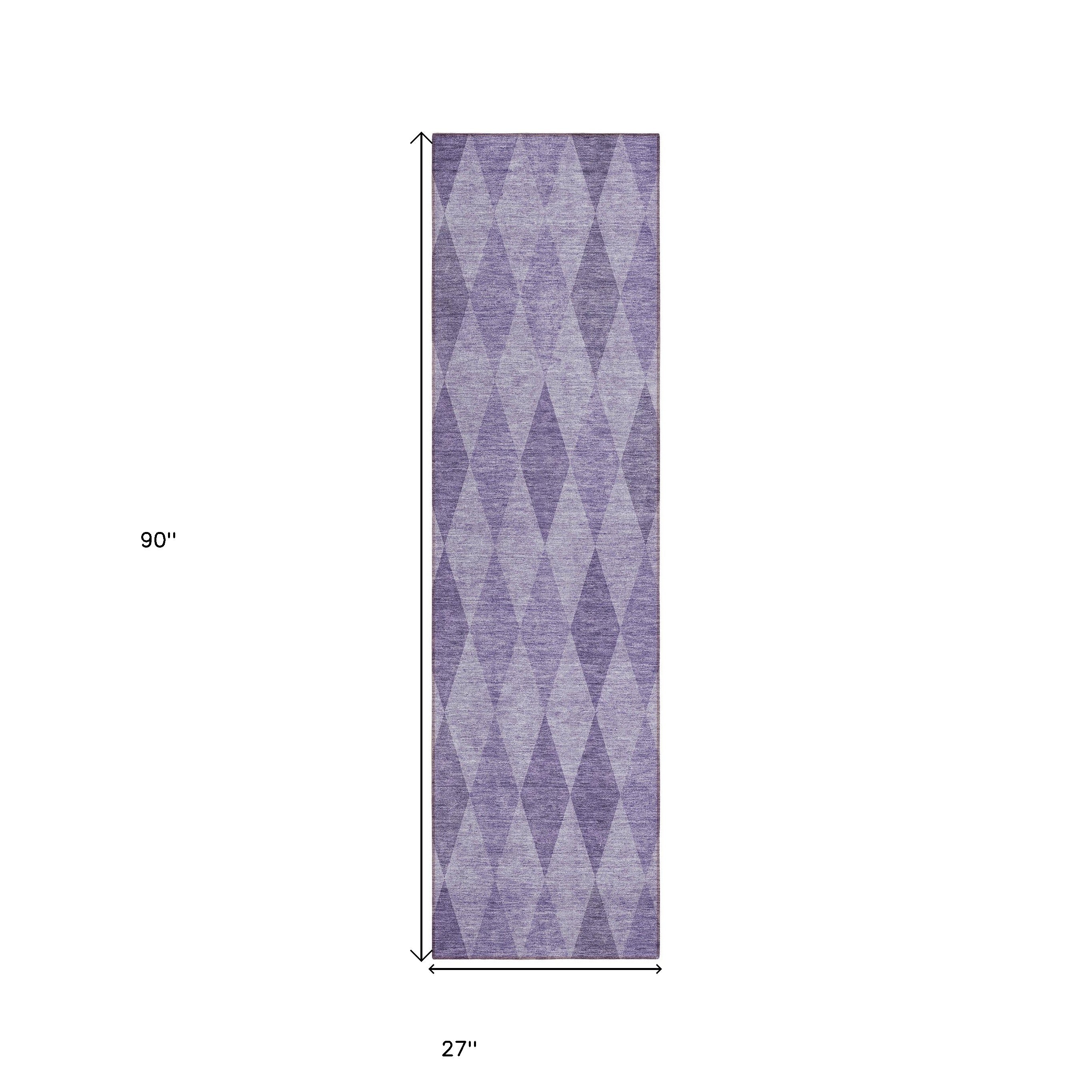 8' Runner Purple Geometric Washable Non Skid Indoor Outdoor Runner Rug