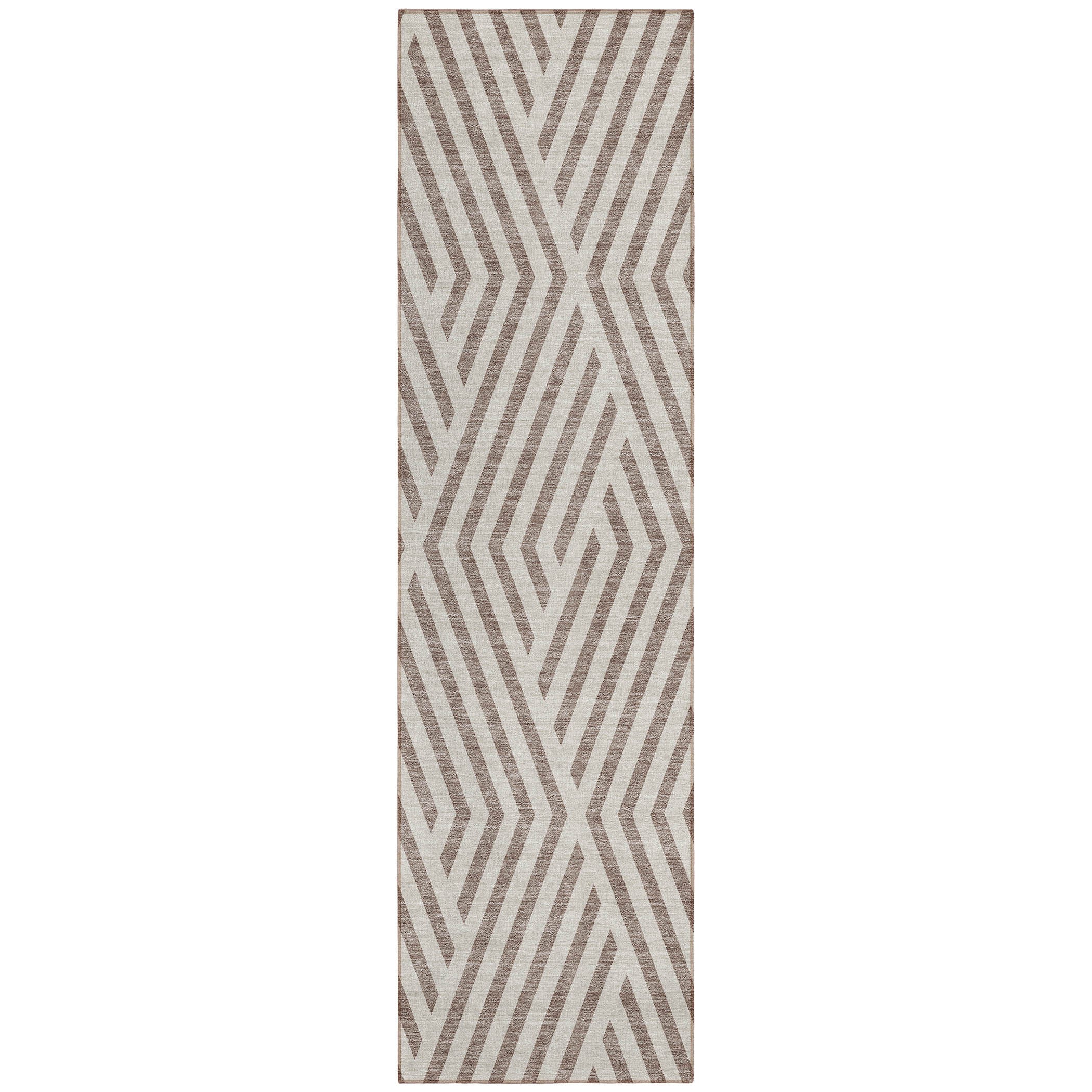 Add some artistry to your room with this 8-foot runner taupe and ivory geometric washable stain resistant...
