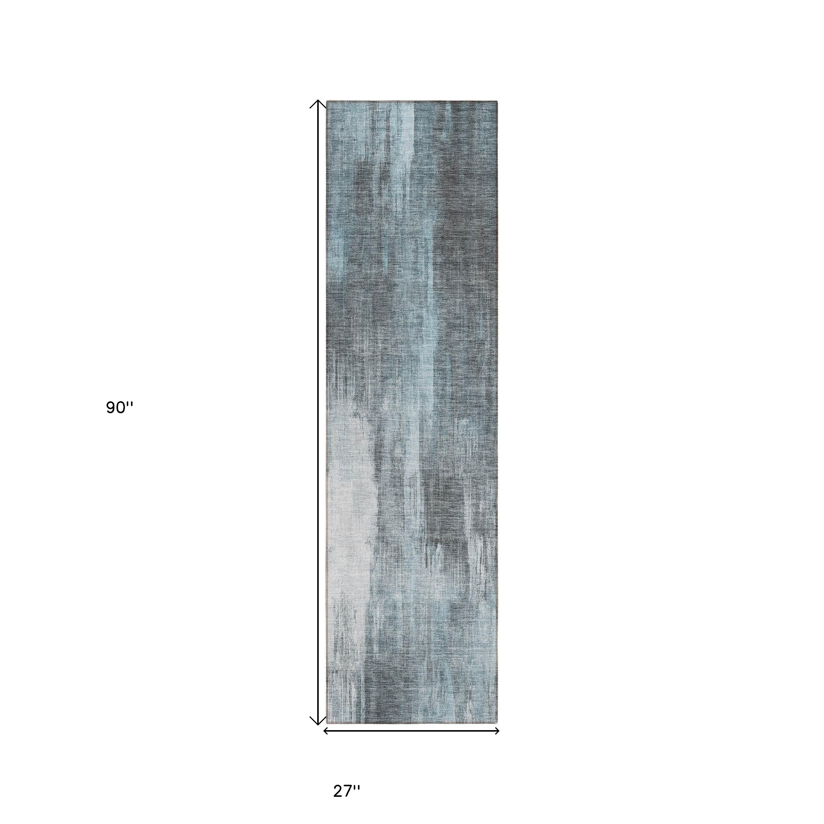 8' Runner Teal Abstract Washable Non Skid Indoor Outdoor Runner Rug