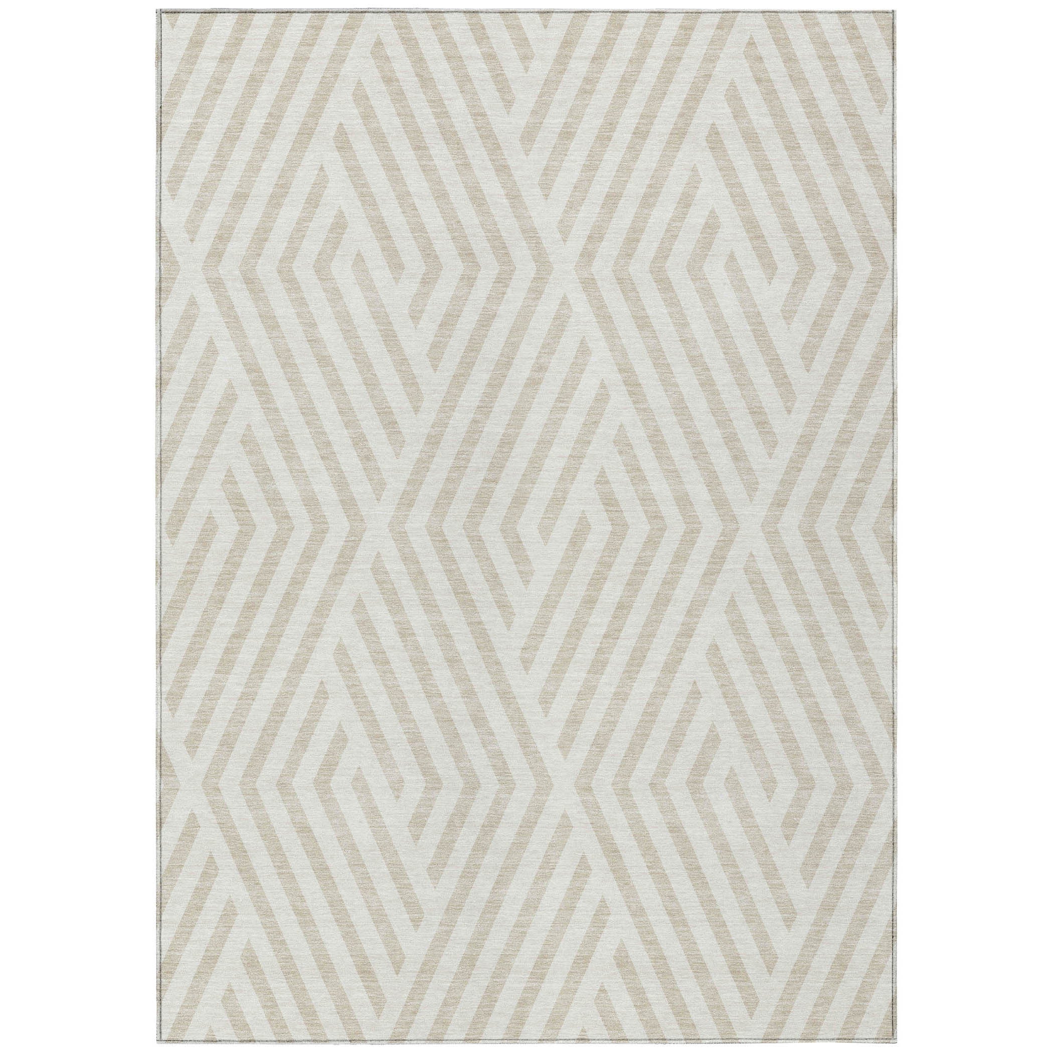 8' X 10' Beige and Ivory Geometric Washable Non Skid Indoor Outdoor Area Rug