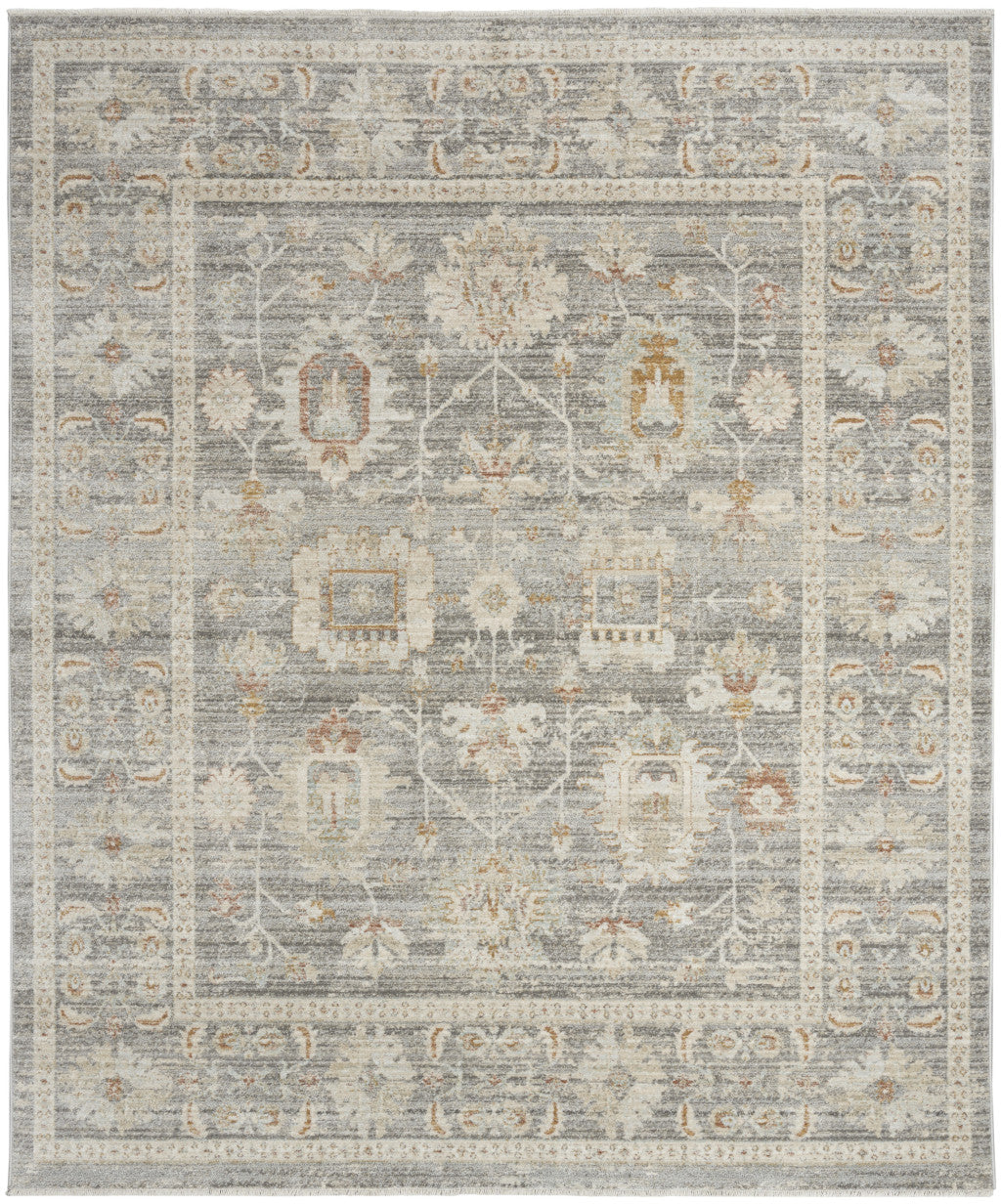 8' x 10' Beige Ivory and Gray Oriental Power Loom Distressed Area Rug With Fringe