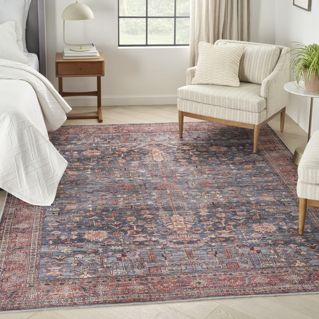 8' x 10' Blue and Red Oriental Power Loom Distressed Washable Non Skid Area Rug