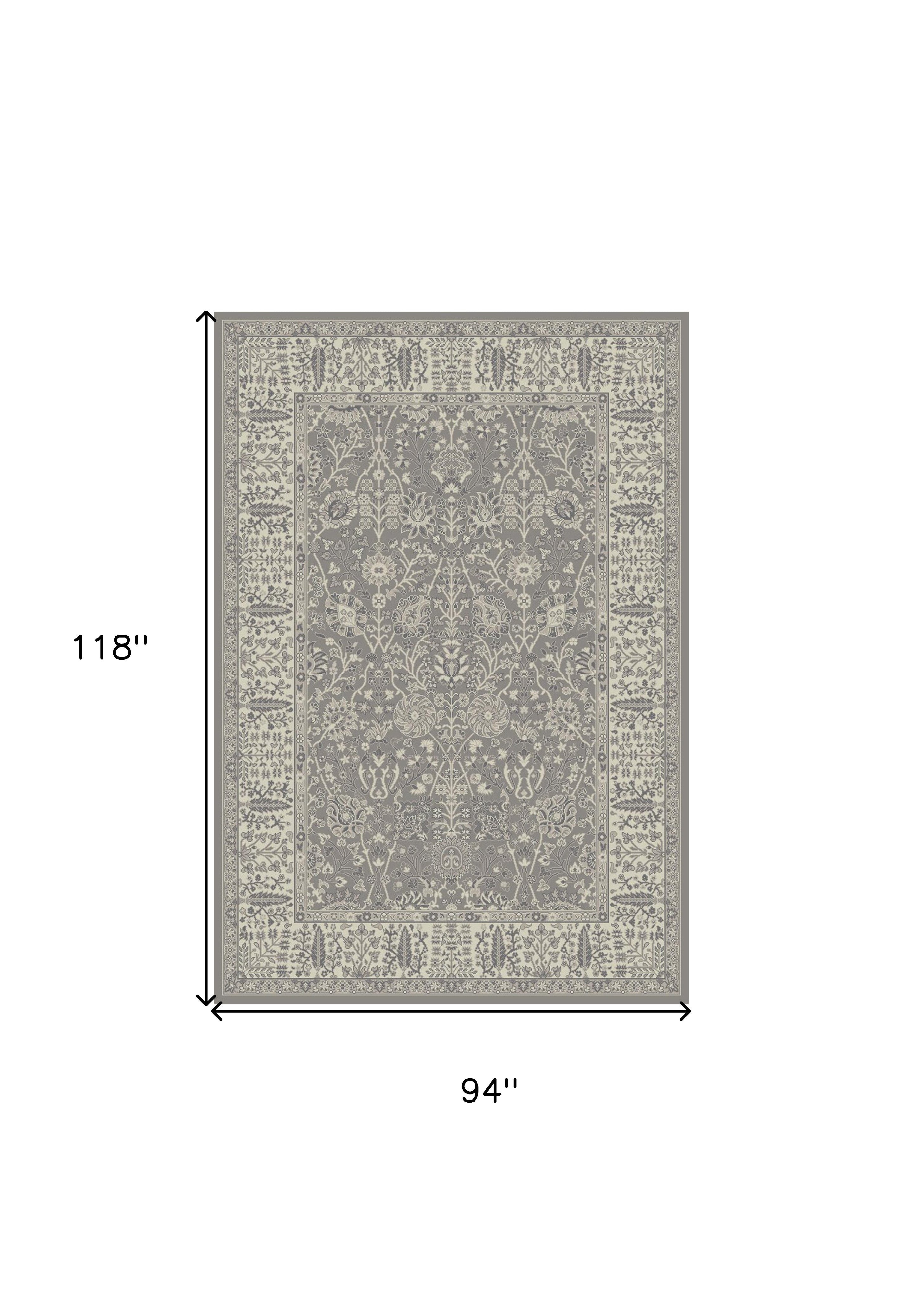 8' x 10' Gray and Ivory Oriental Area Rug