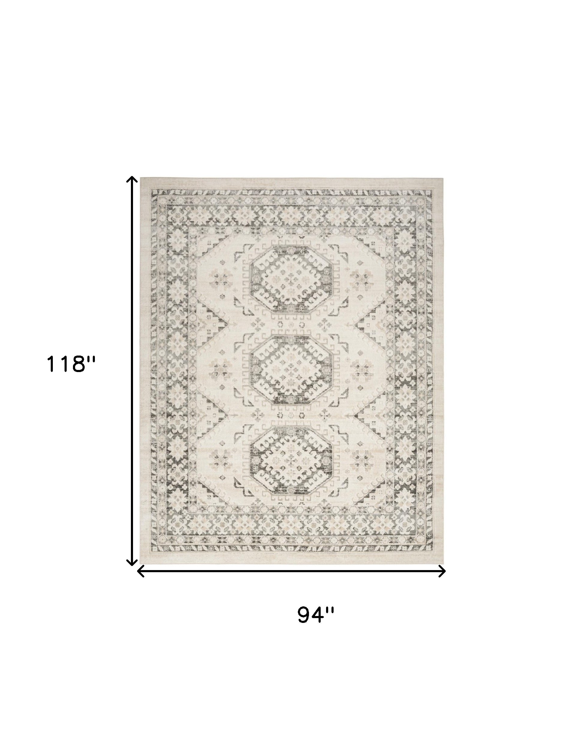 This 8-foot x 10-foot gray geometric distressed area rug, is a great way to add warmth to...