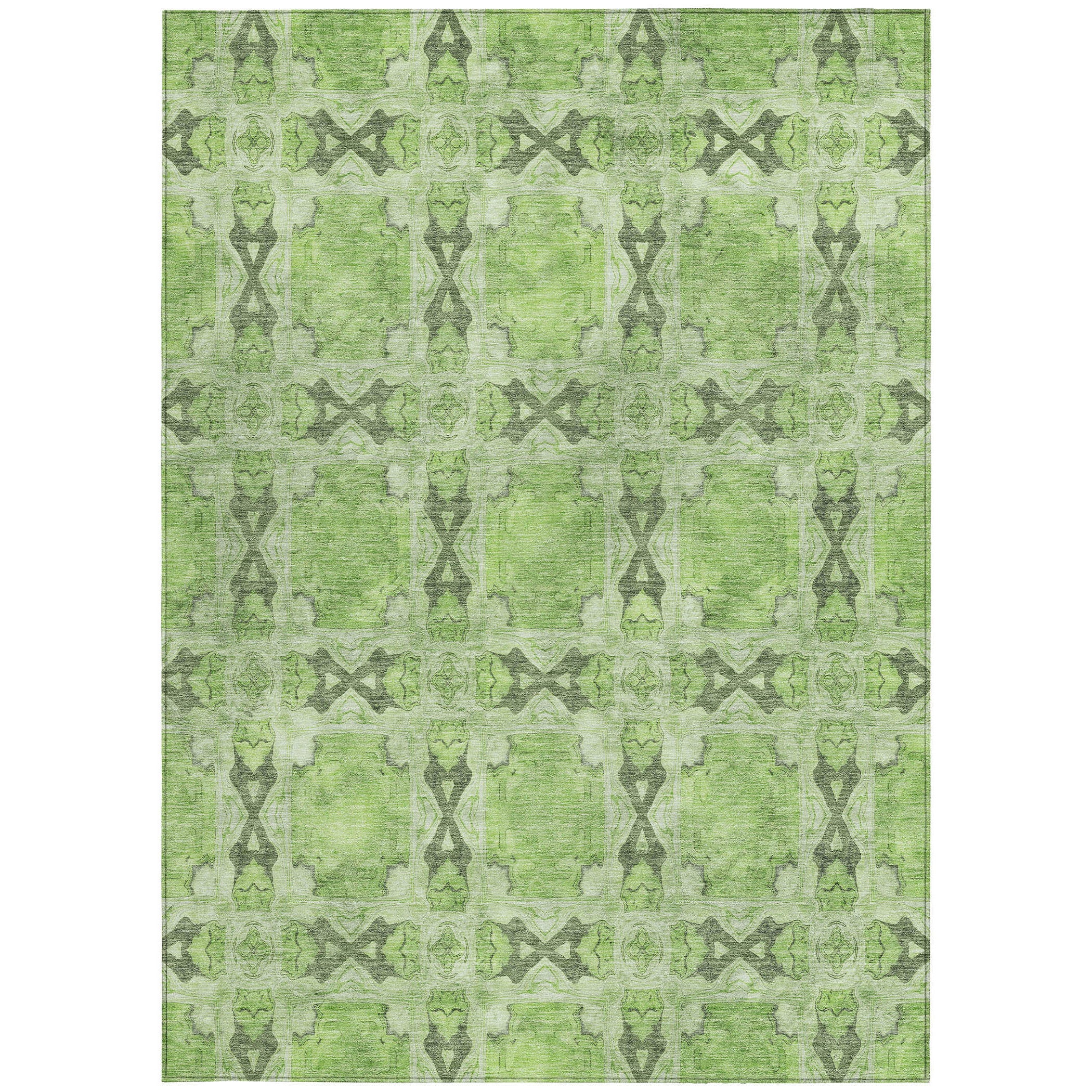 8' X 10' Green Floral Medallion Washable Non Skid Indoor Outdoor Area Rug