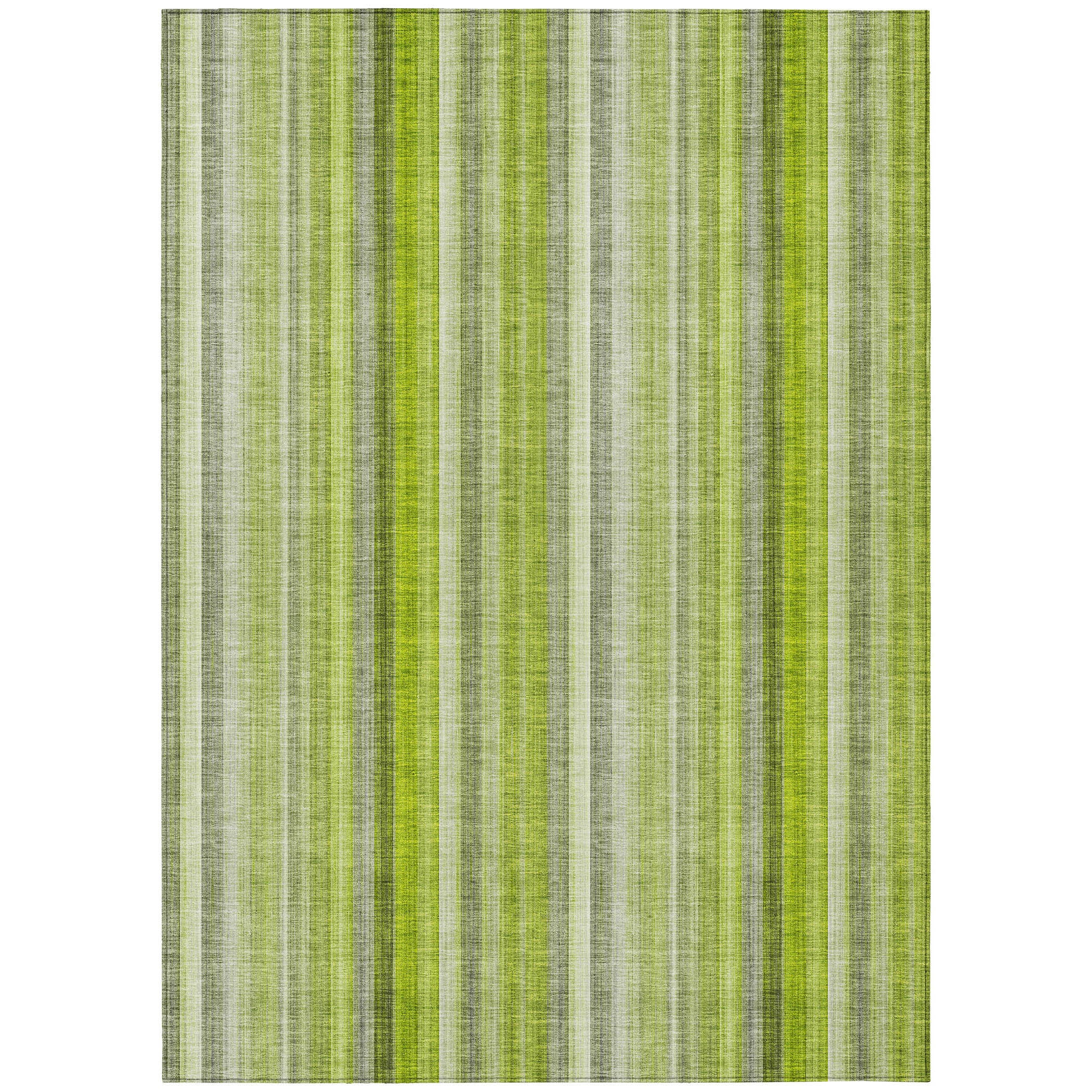 8' X 10' Green Striped Washable Non Skid Indoor Outdoor Area Rug