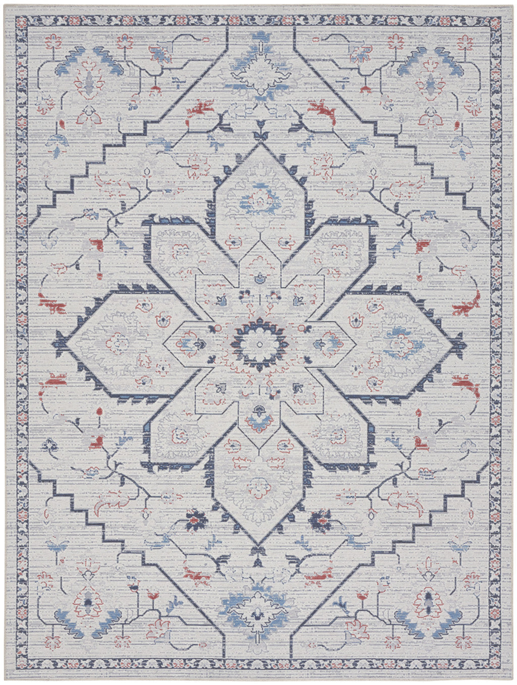 8' x 10' Ivory and Blue Oriental Power Loom Washable Area Rug