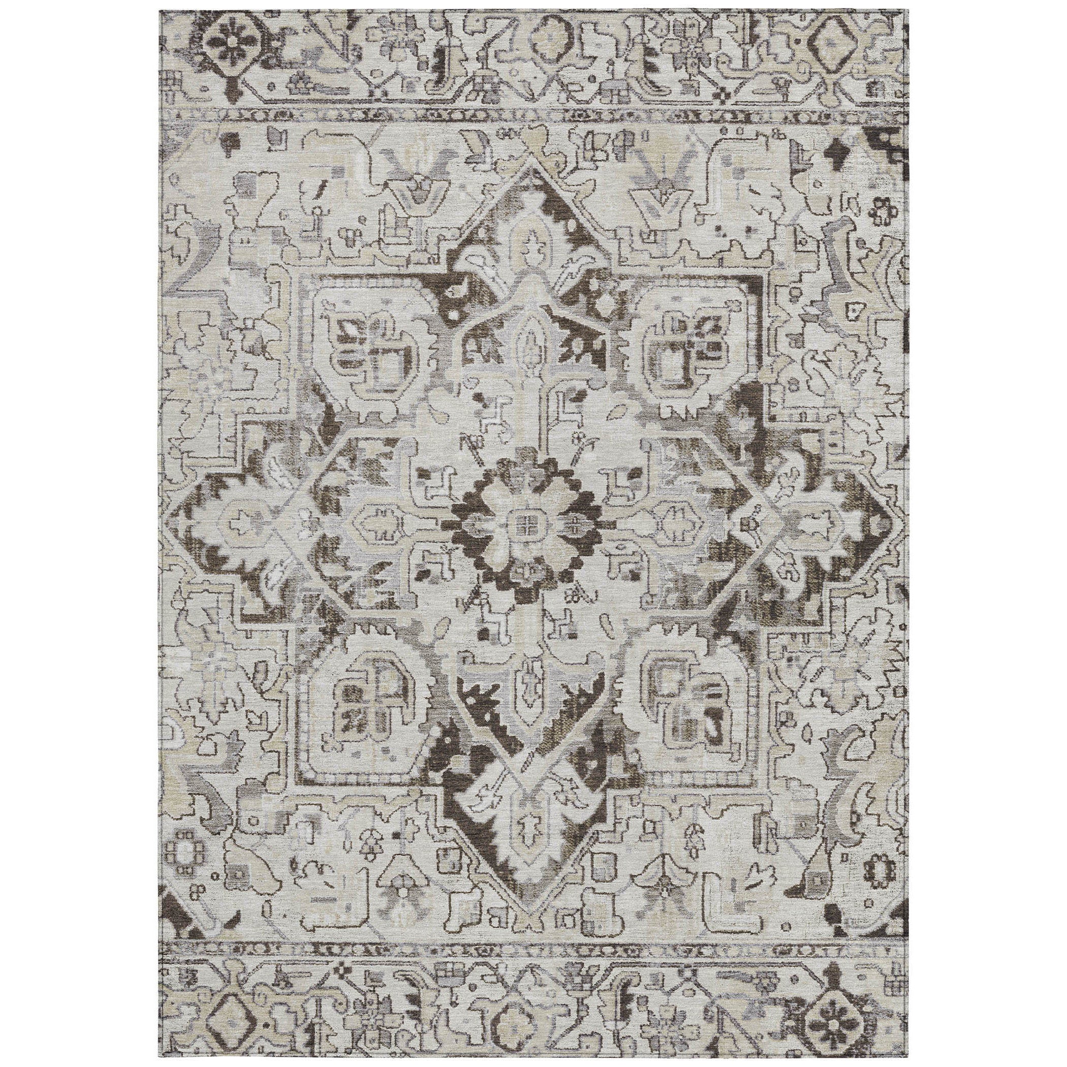 8' X 10' Ivory and Dark Brown Oriental Washable Non Skid Indoor Outdoor Area Rug