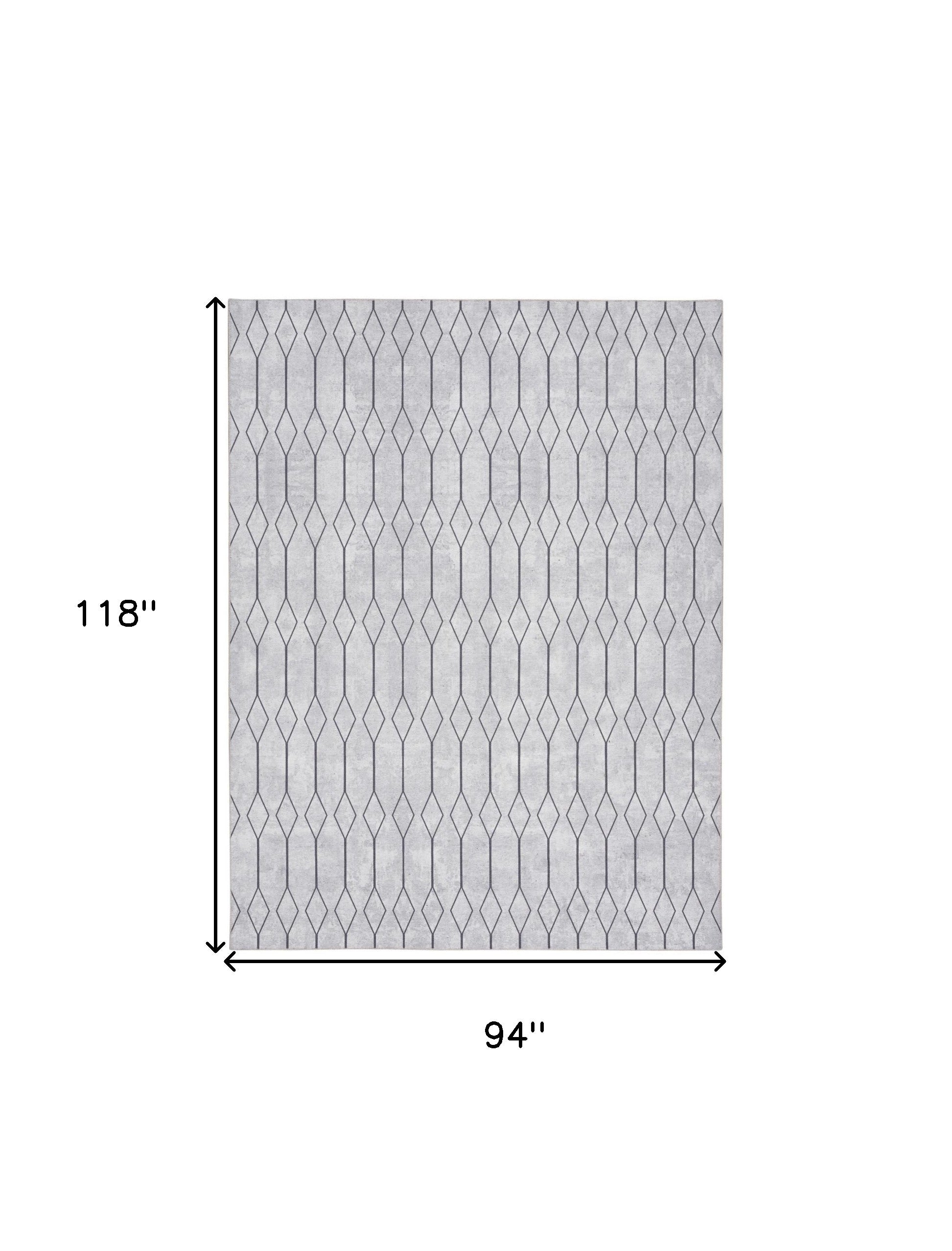 8' x 10' Ivory and Gray Geometric Power Loom Washable Area Rug