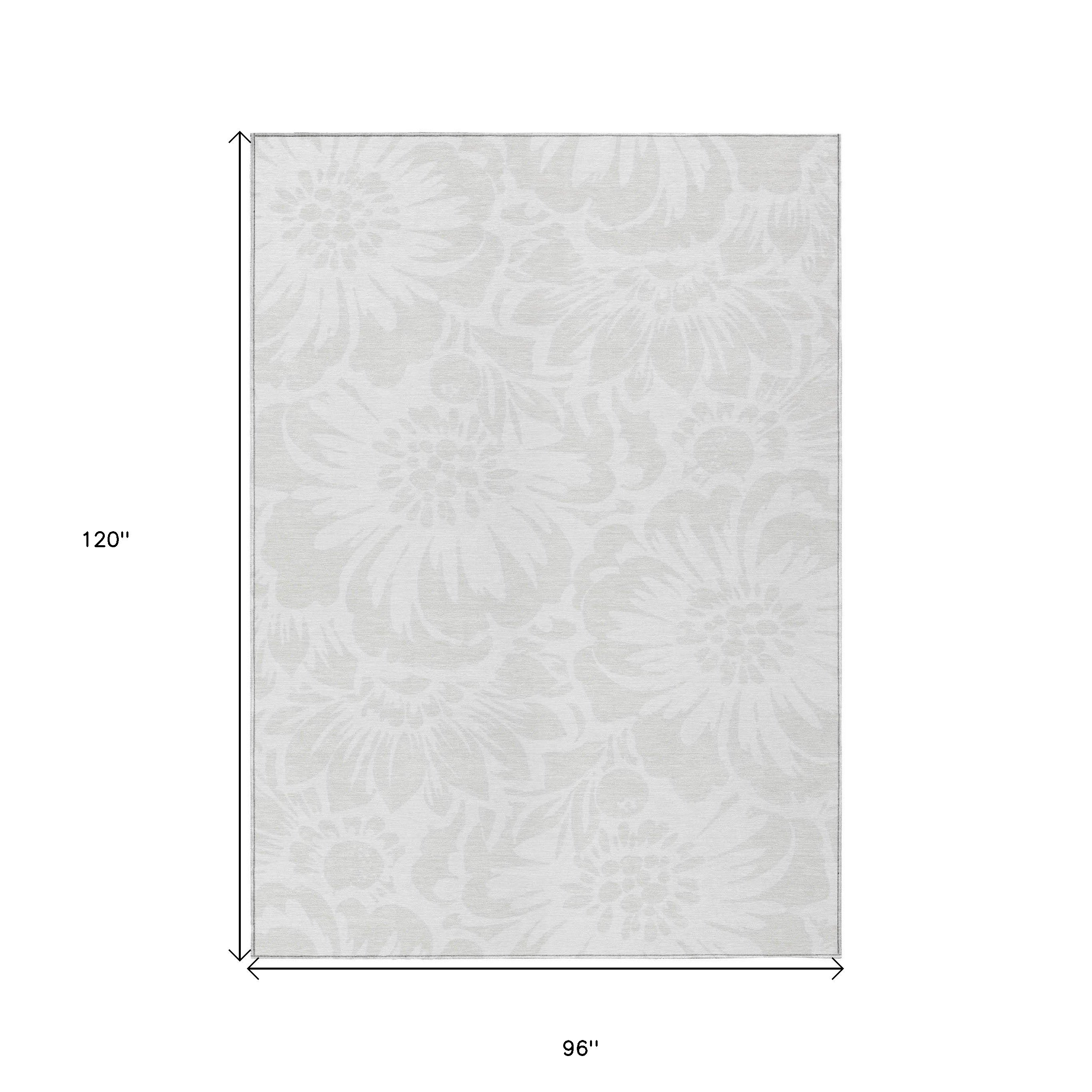 8' X 10' Ivory Floral Washable Non Skid Indoor Outdoor Area Rug