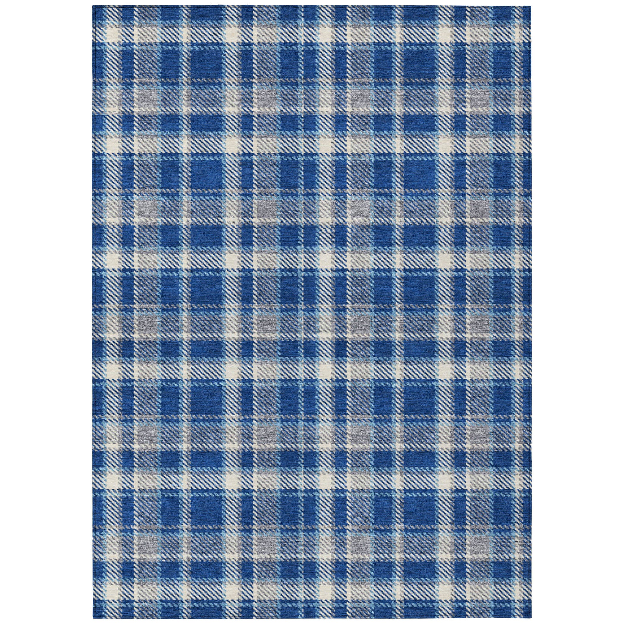 This 8-foot x 10-foot navy and ivory plaid washable stain resistant non skid indoor outdoor area rug,...