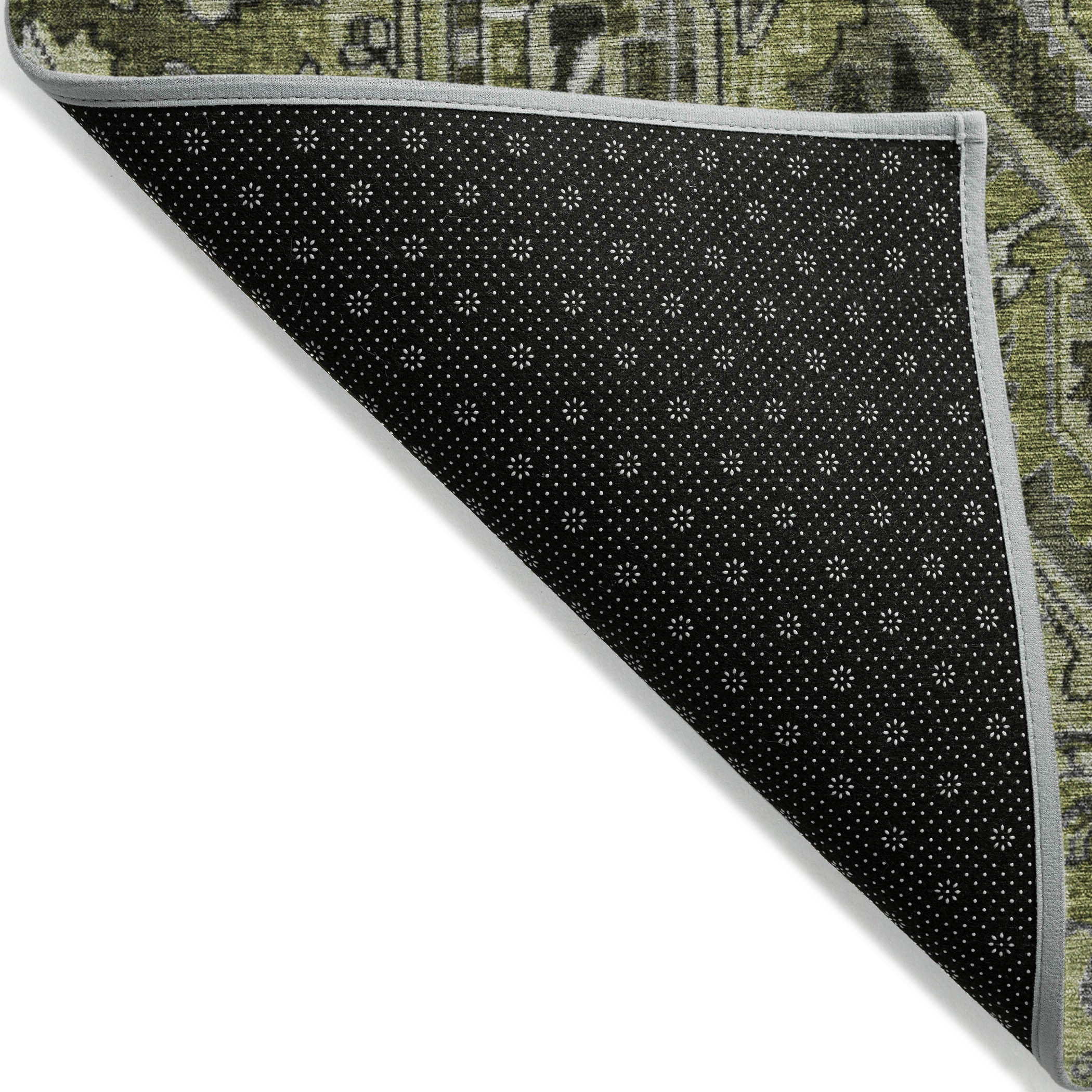 This 8-foot x 10-foot olive green and dark green oriental washable stain resistant non skid indoor outdoor...