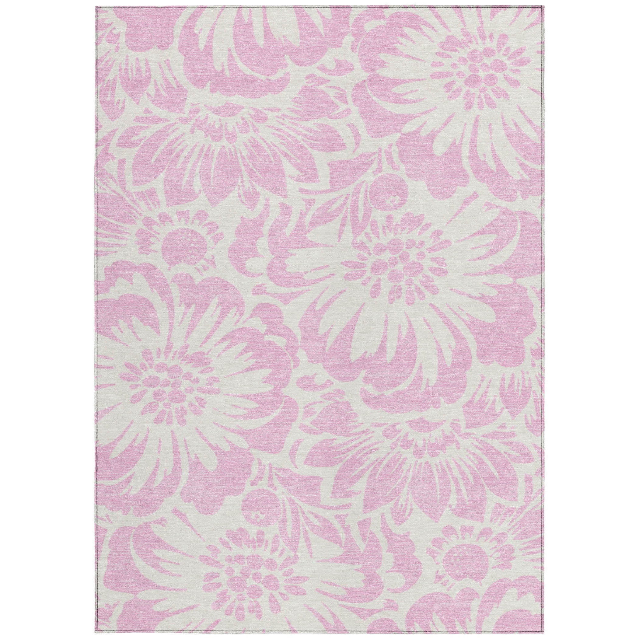 Add some artistry to your room with this 8-foot x 10-foot pink and ivory floral washable stain...