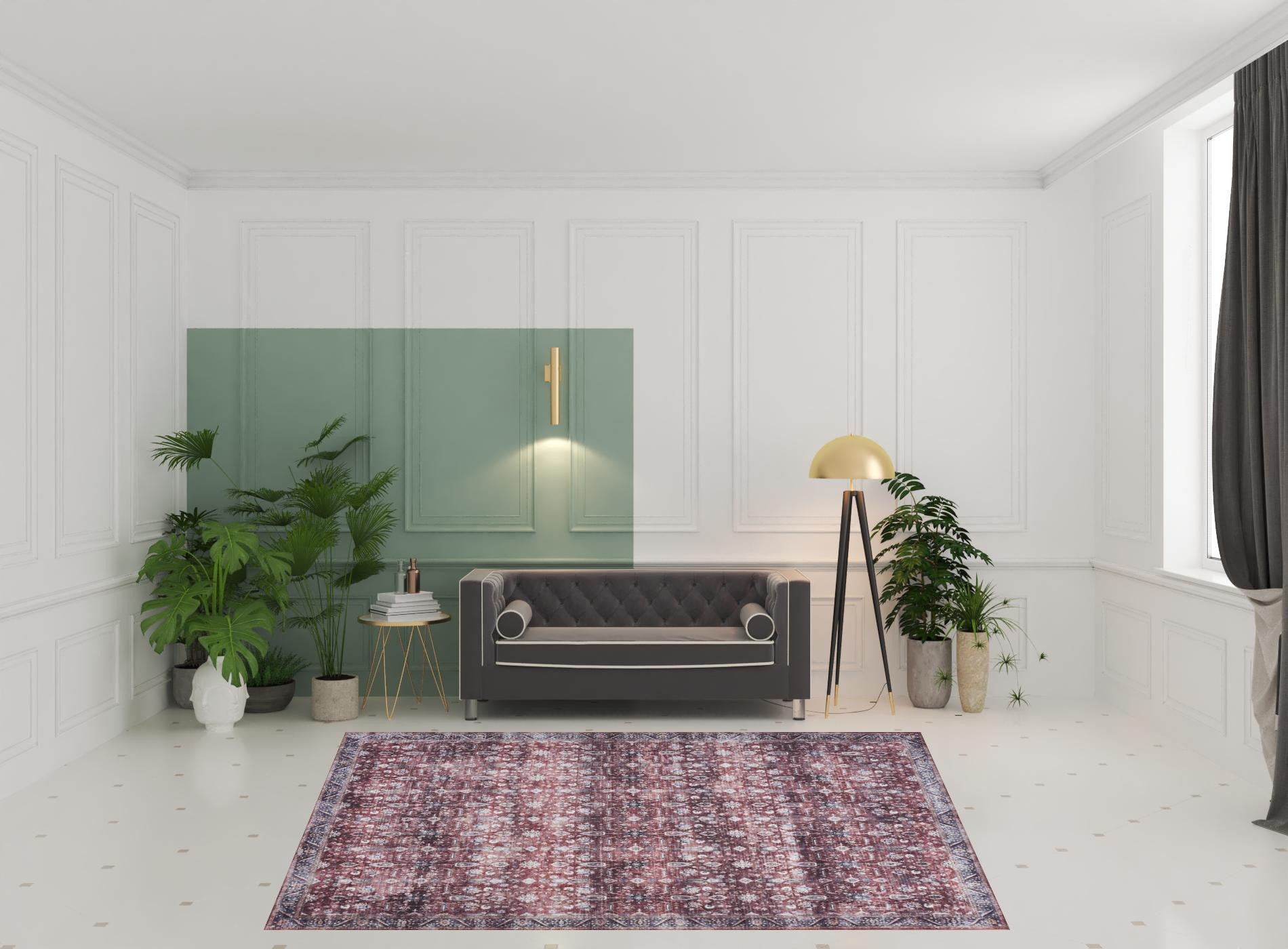 8' x 10' Red and Ivory Oriental Power Loom Distressed Washable Non Skid Area Rug