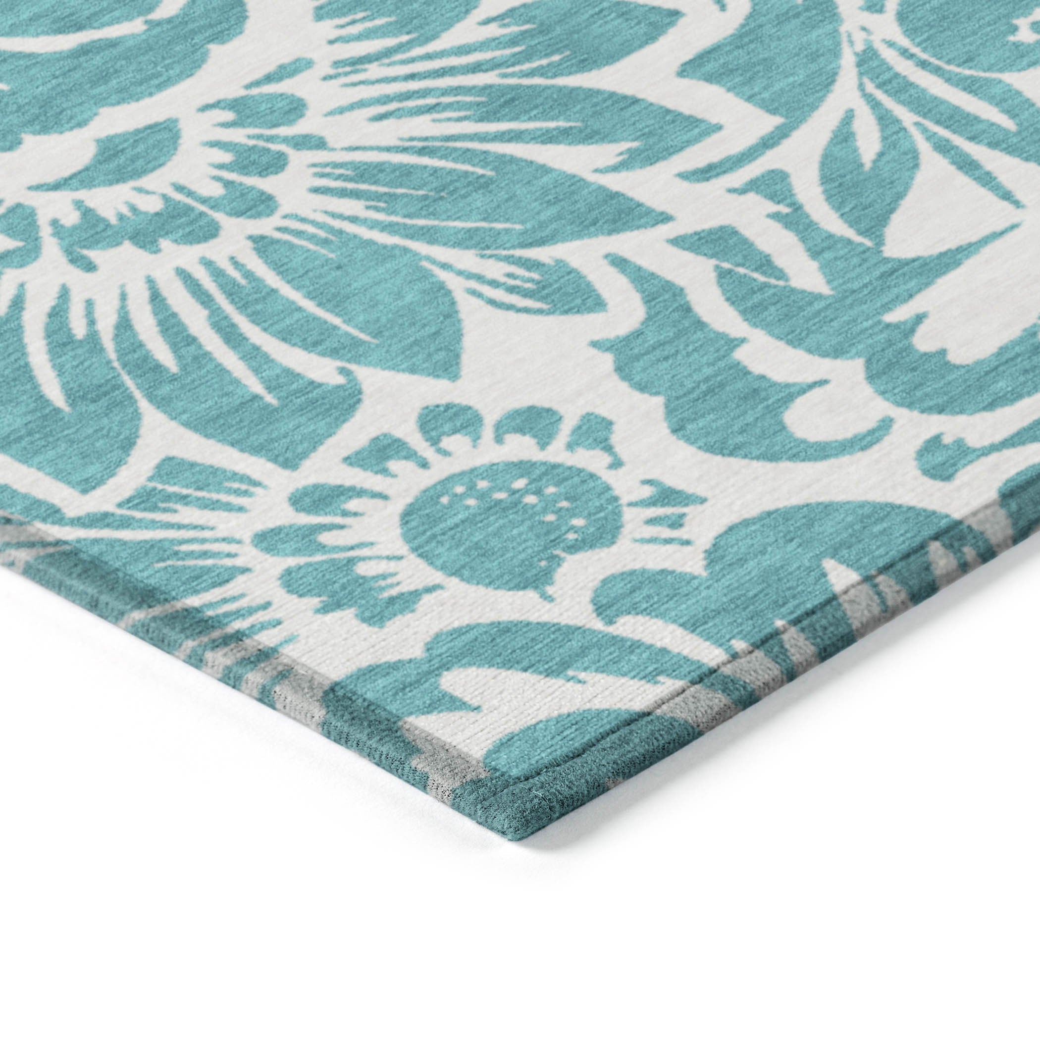 Add some artistry to your room with this 8-foot x 10-foot teal and ivory floral washable stain...