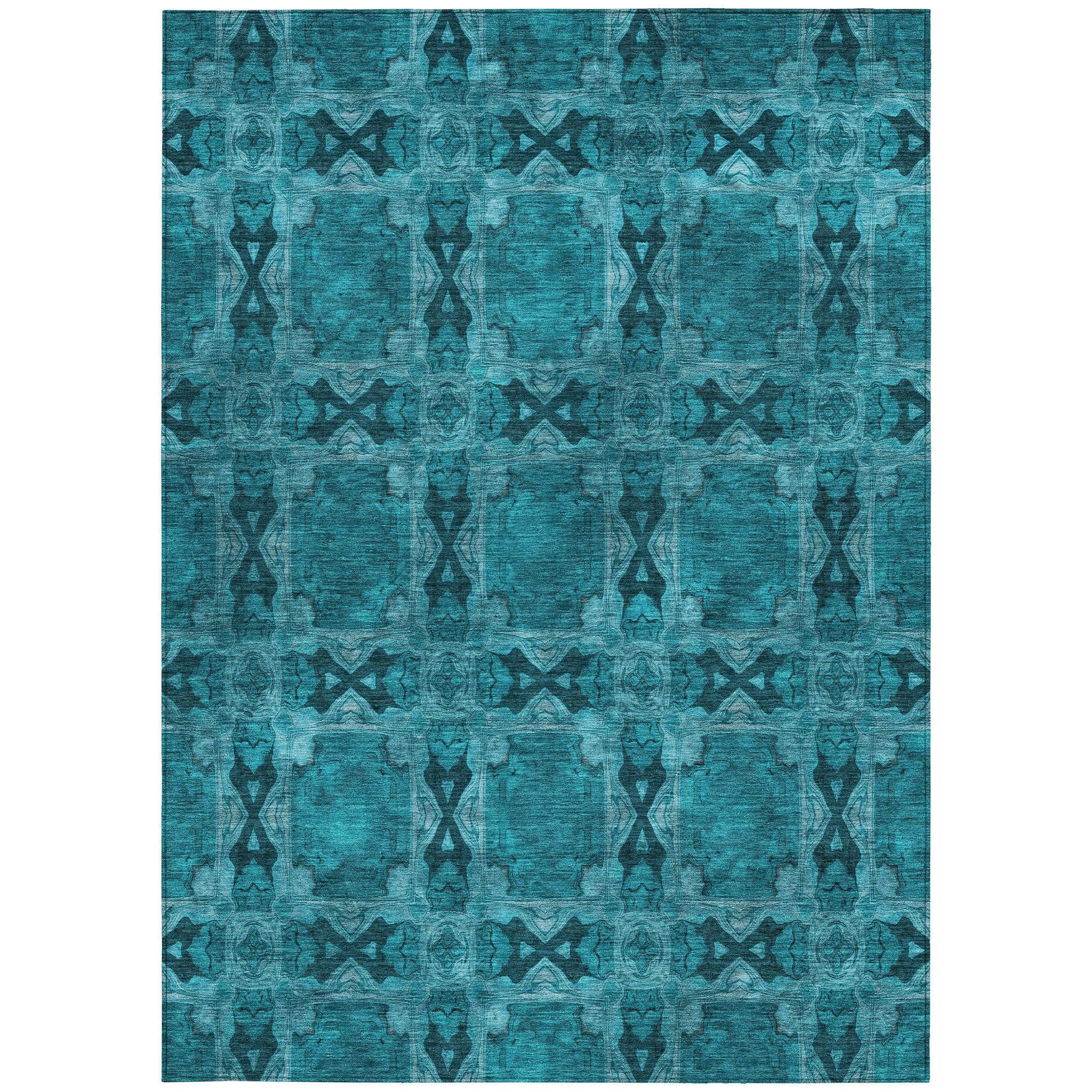 8' X 10' Teal Floral Medallion Washable Non Skid Indoor Outdoor Area Rug