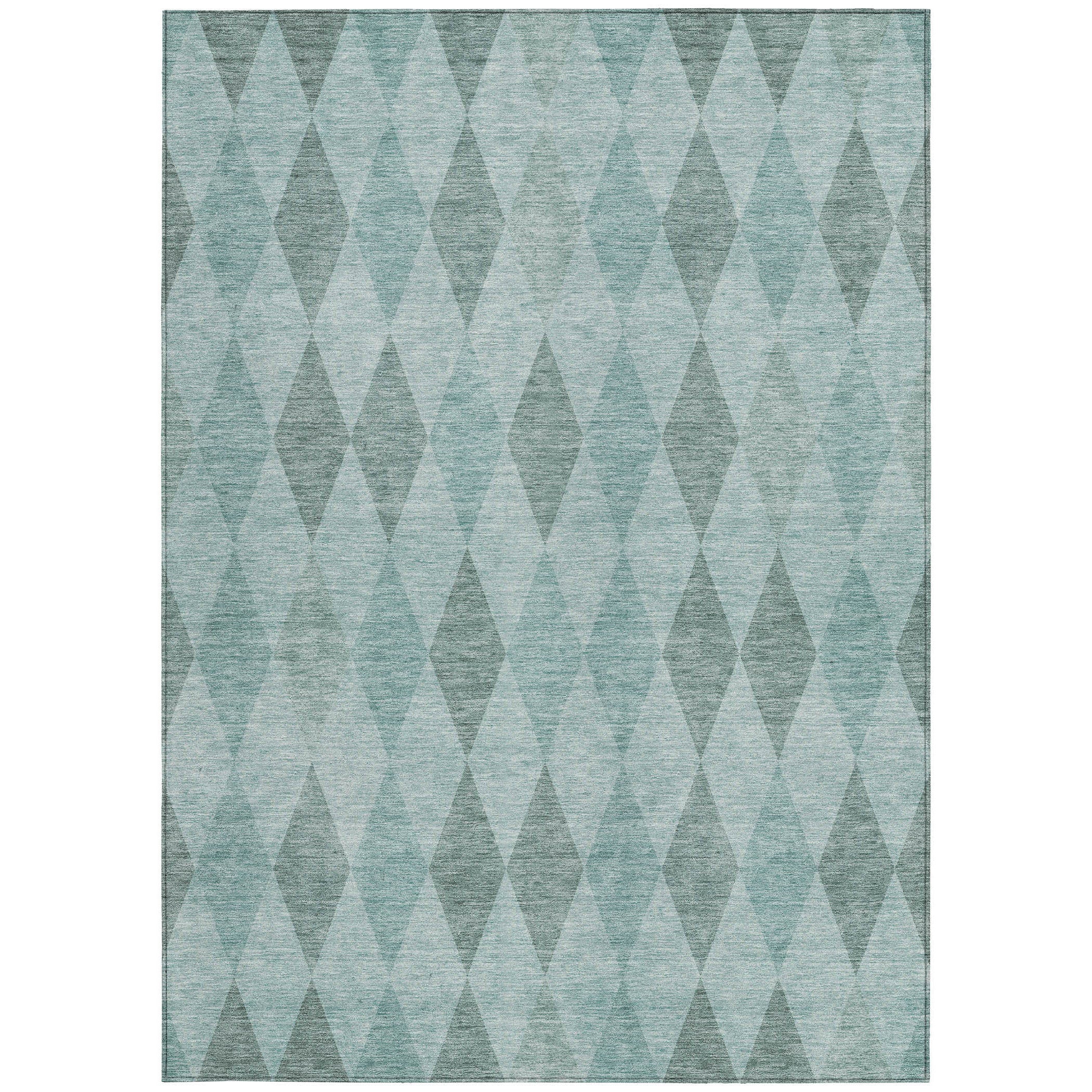 8' X 10' Teal Geometric Washable Non Skid Indoor Outdoor Area Rug