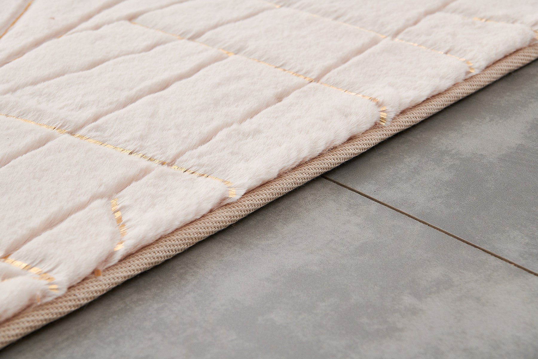 This 8-foot x 11-foot beige and gold faux fur abstract shag non skid area rug, is a...