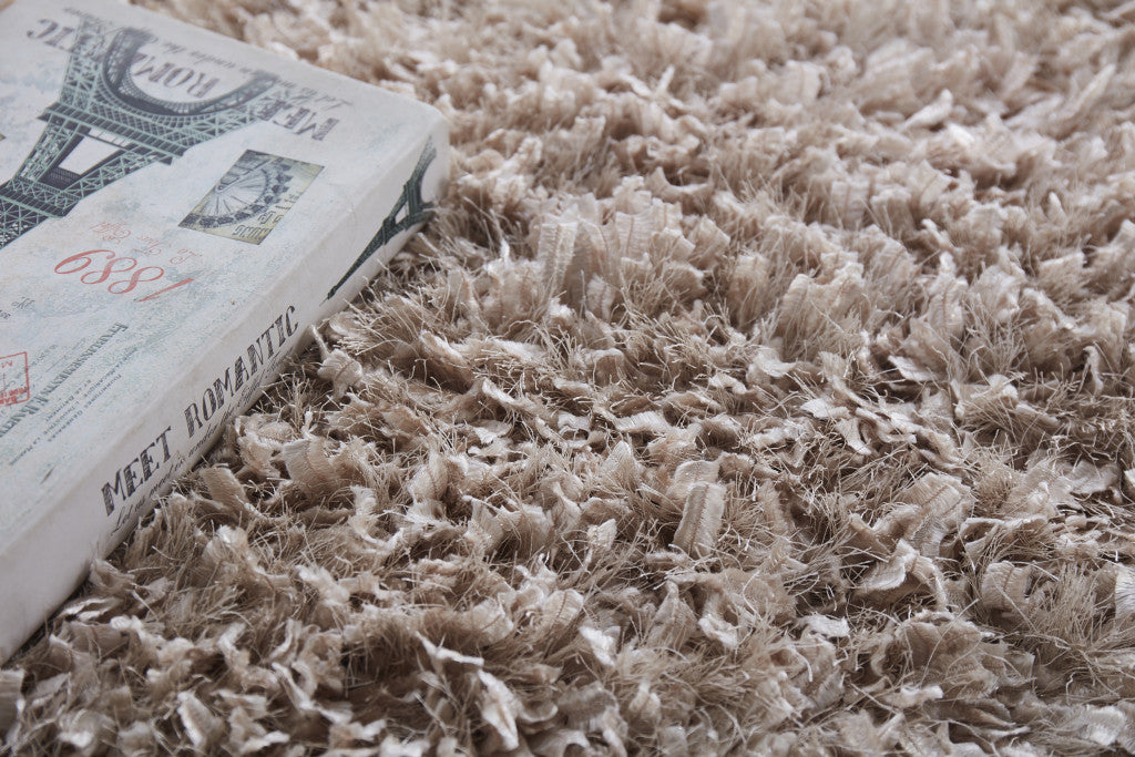 8' x 11' Beige Shag Hand Tufted Area Rug