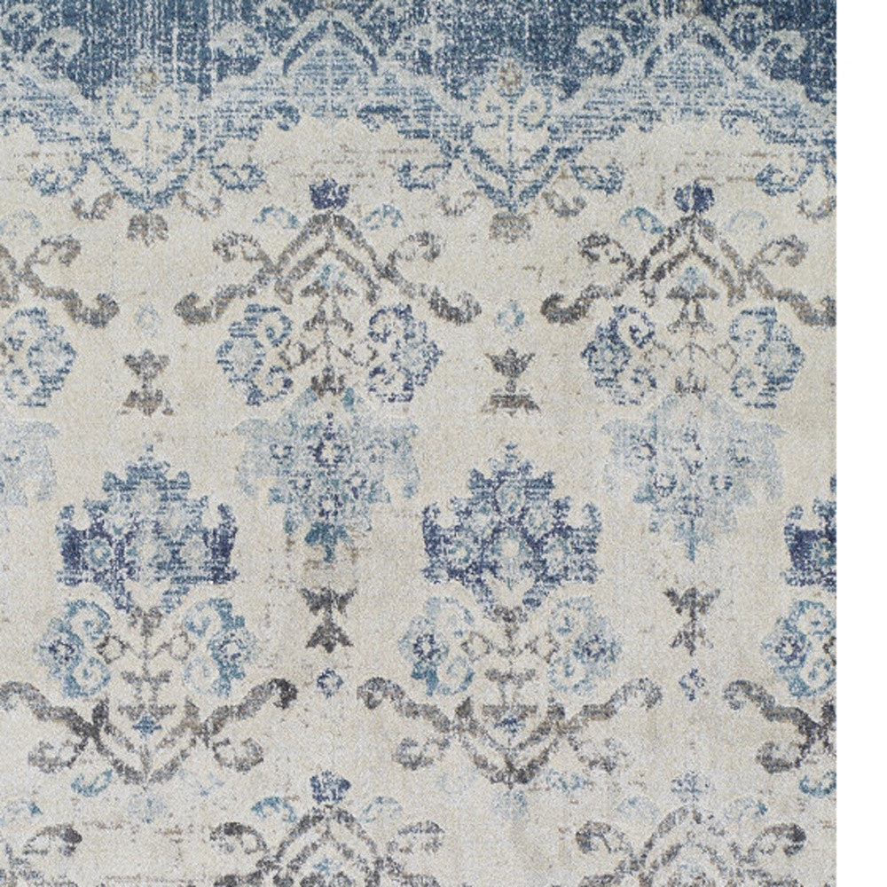 Add some artistry to your room with this 8-foot x 11-foot blue and ivory oriental area rug....
