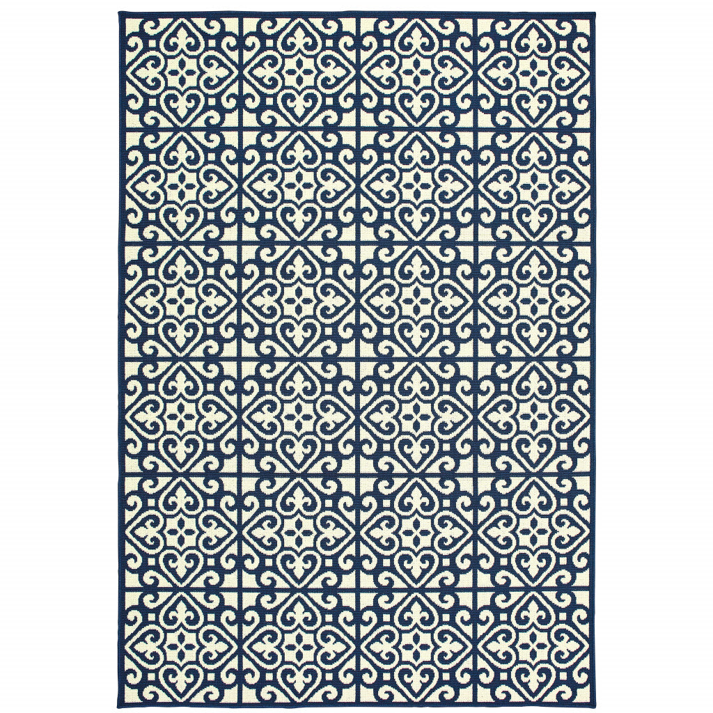 8' X 11' Ivory Geometric Stain Resistant Indoor Outdoor Area Rug