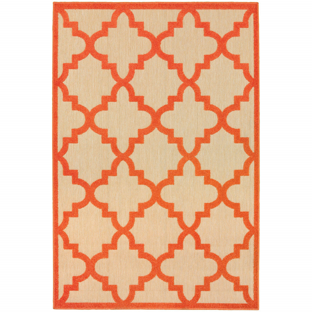 8' X 11' Sand Geometric Stain Resistant Indoor Outdoor Area Rug