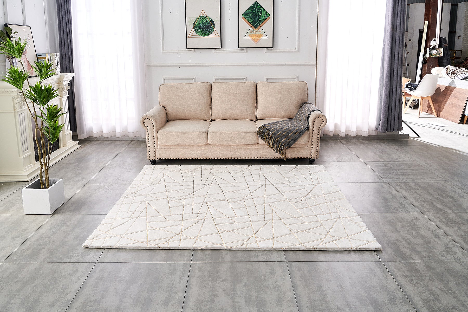 Add some artistry to your room with this 8-foot x 11-foot white and gold faux fur abstract...