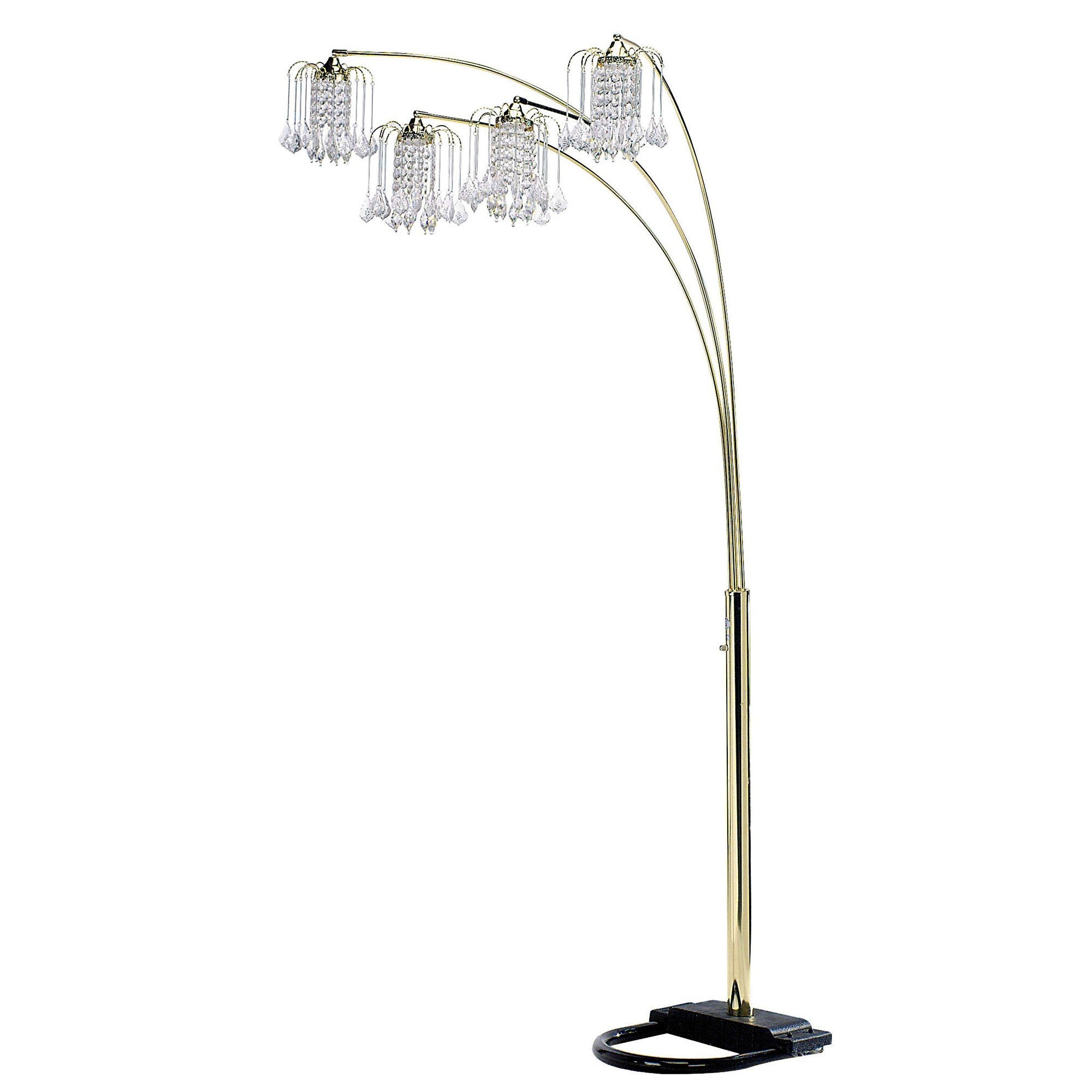 84" Gold Four Lights Tree Floor Lamp With Clear Chandelier Shade