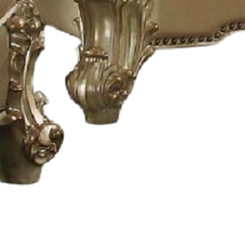 89" Bone Faux Leather And Gold Sofa With Five Toss Pillows