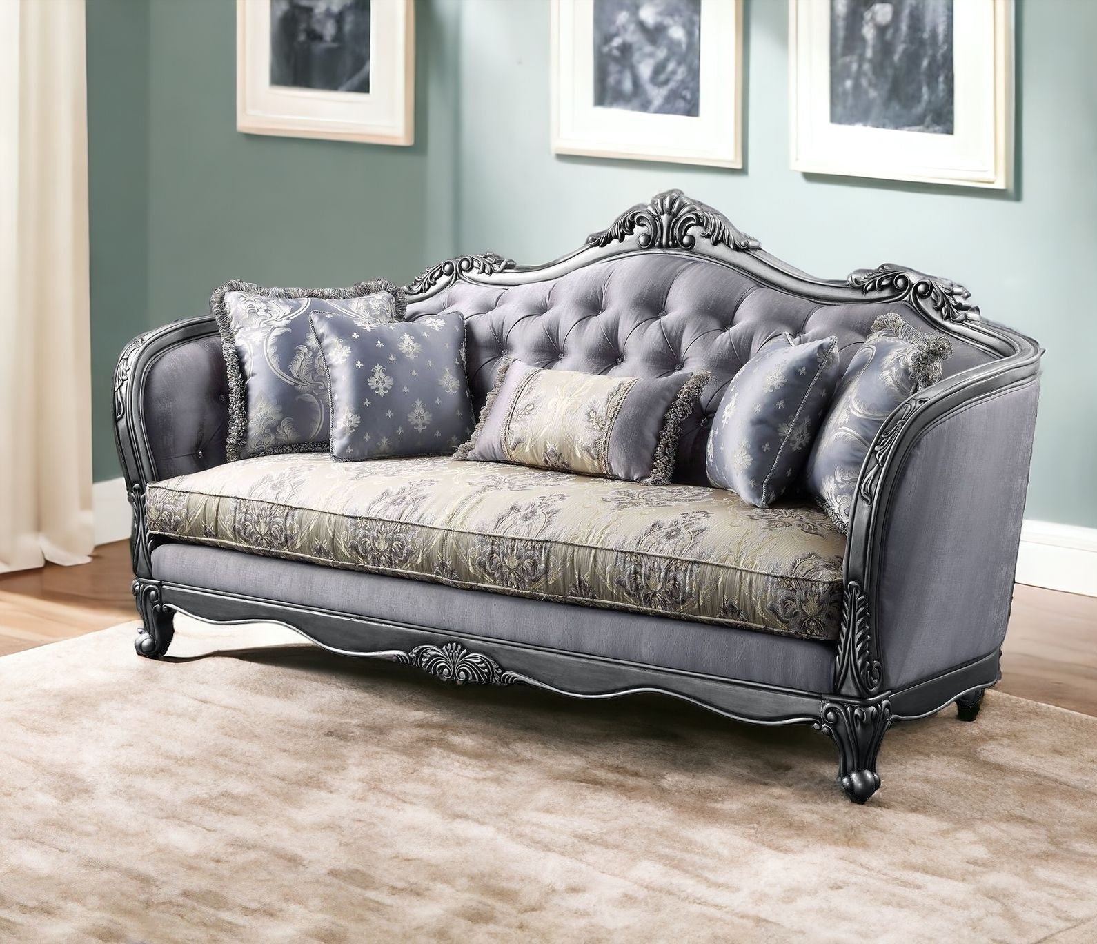 89" Fabric Imitation silk And Platinum Sofa With Five Toss Pillows