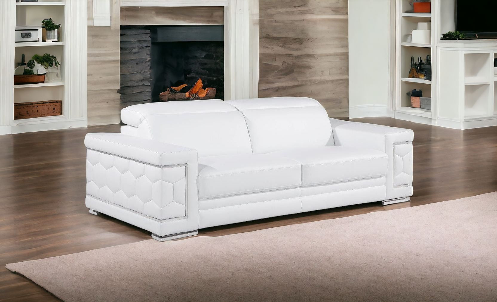 An interior designer's dream, this buttery soft high grade leather 89-inch white and silver leather sofa will...