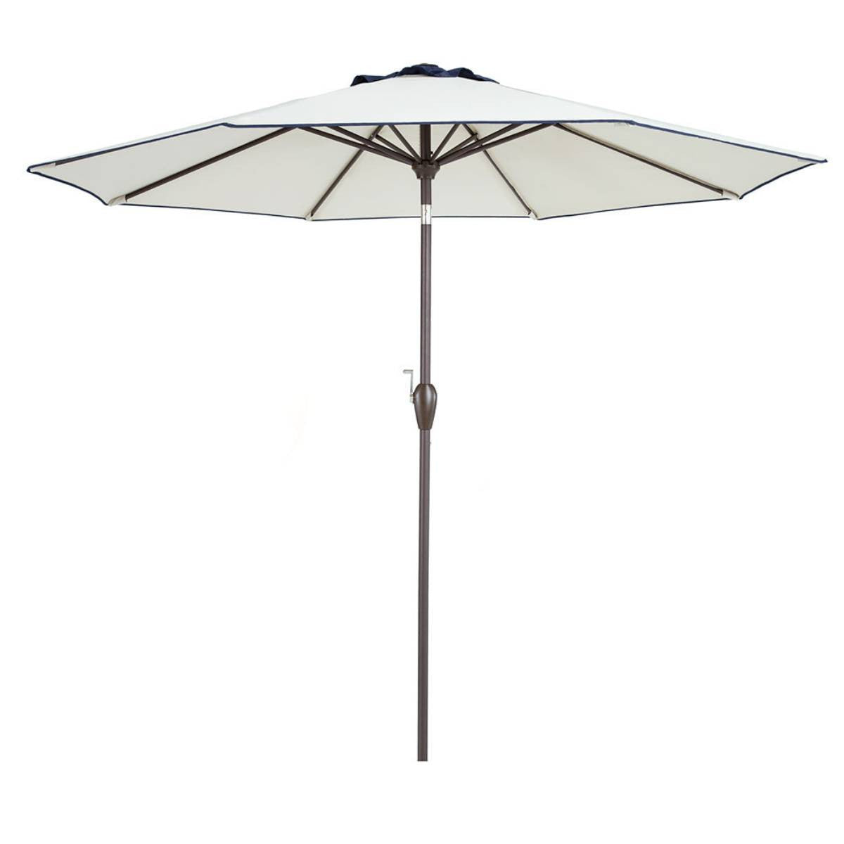 9' Beige And Navy Polyester Octagonal Tilt Market Patio Umbrella