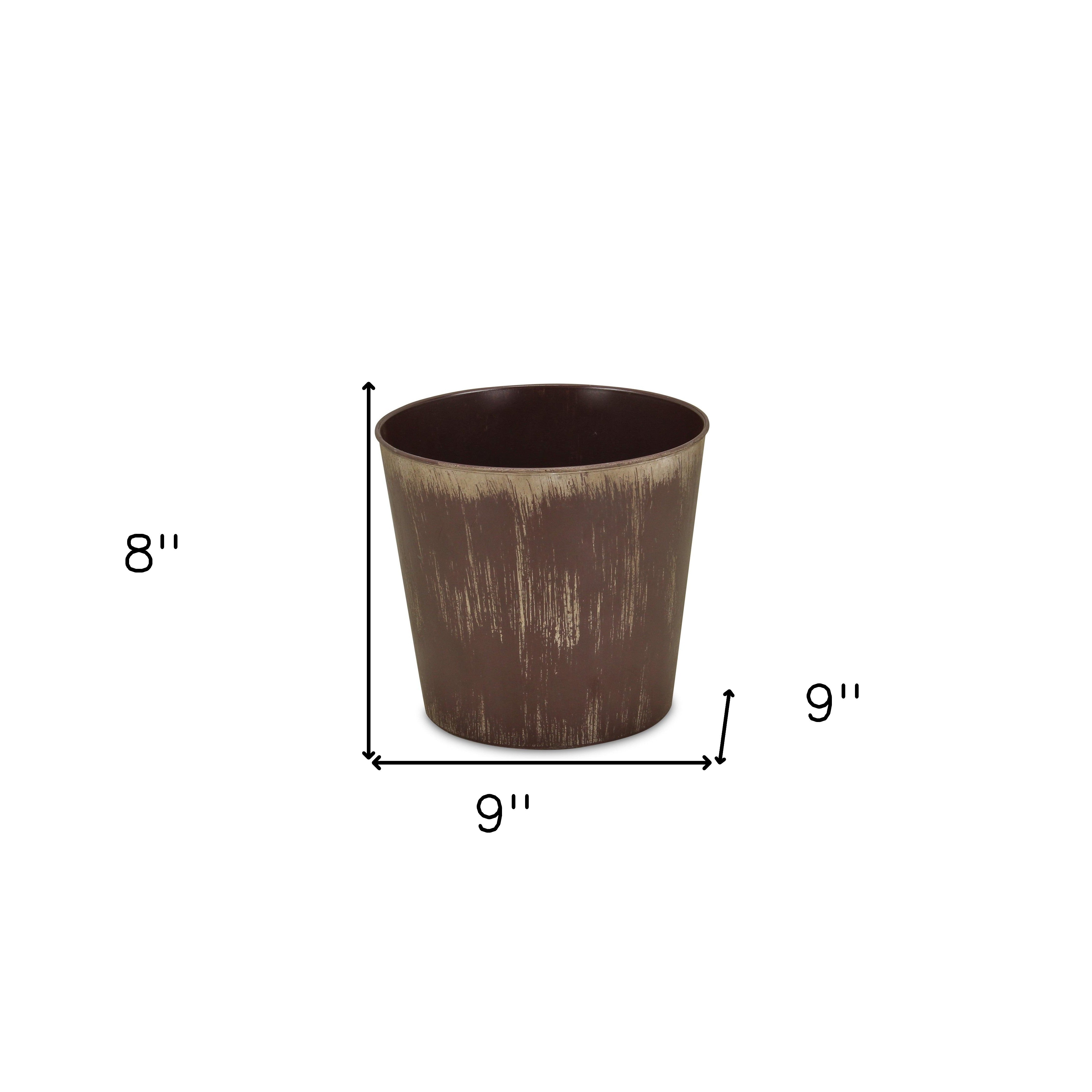 9" Brown and Ivory Abstract Recycled Plastic Indoor Outdoor Round Pot Planter