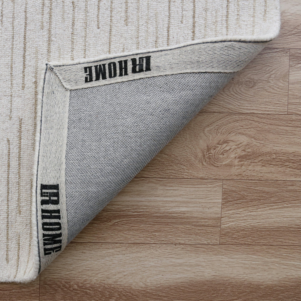 9' x 12' Beige and Ivory Wool Striped Hand Tufted Area Rug