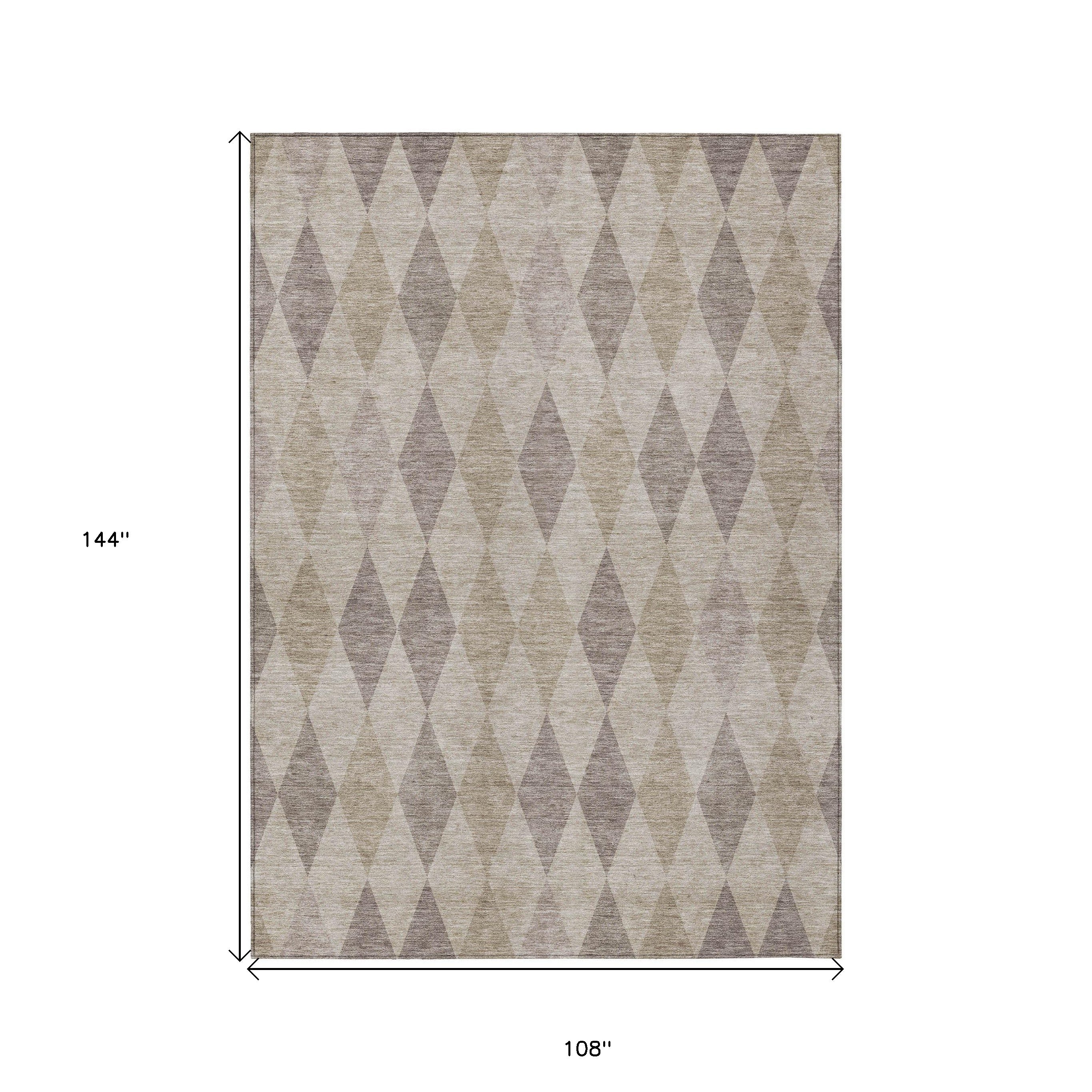 9' X 12' Beige Taupe and Brown Geometric Washable Non Skid Indoor Outdoor Area Rug