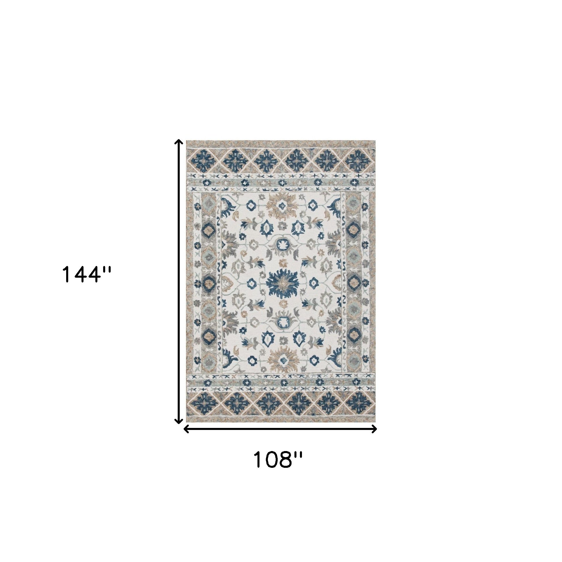 9' x 12' Blue and Ivory Wool Floral Hand Tufted Area Rug