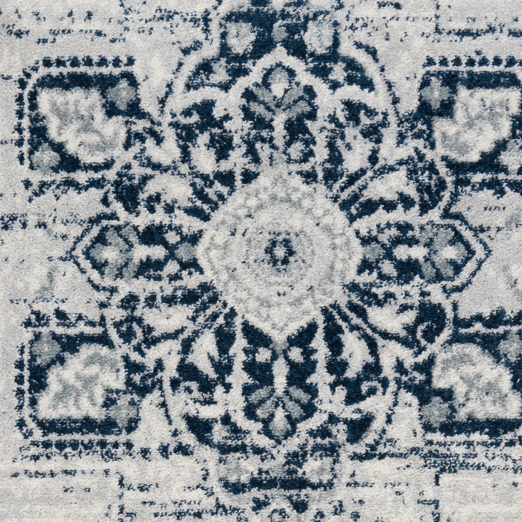9' x 12' Dark Blue Medallion Power Loom Area Rug