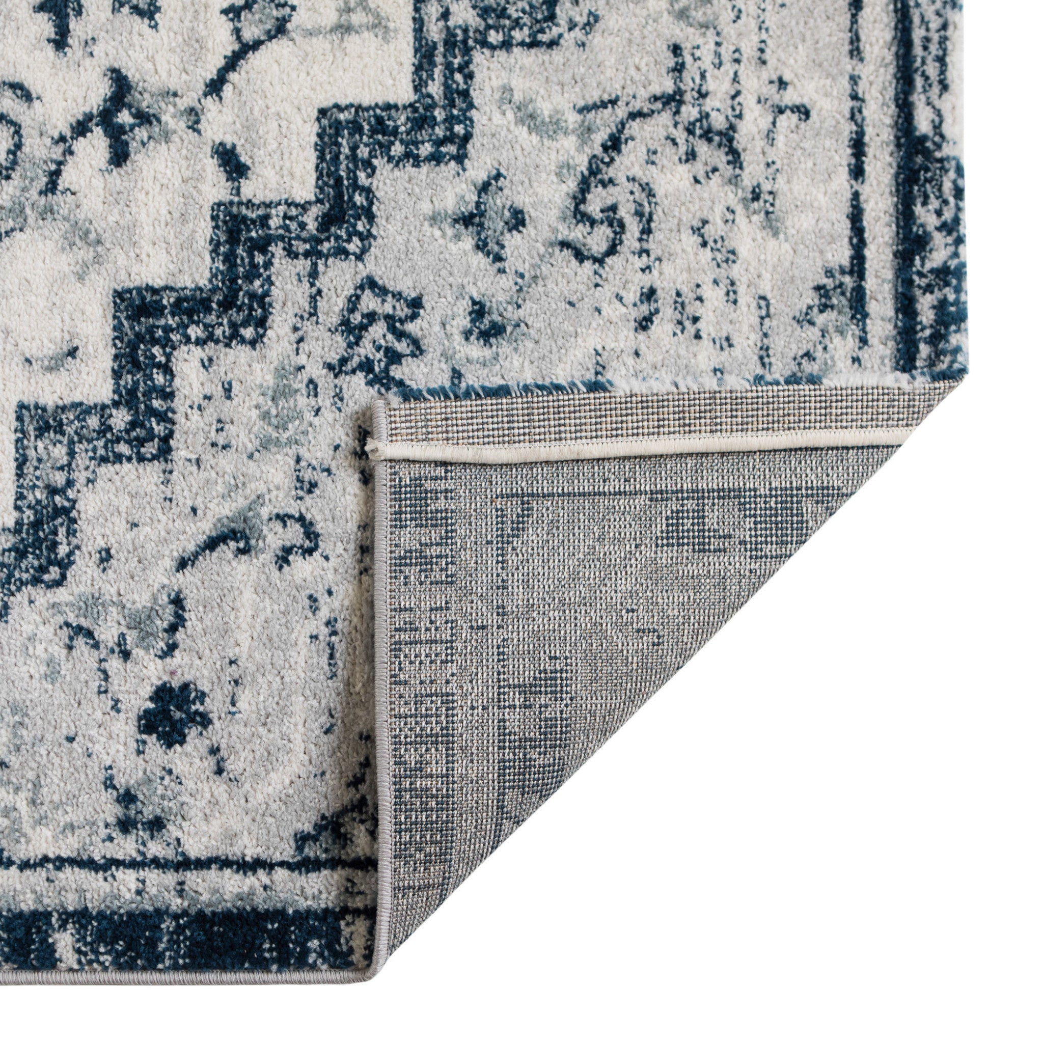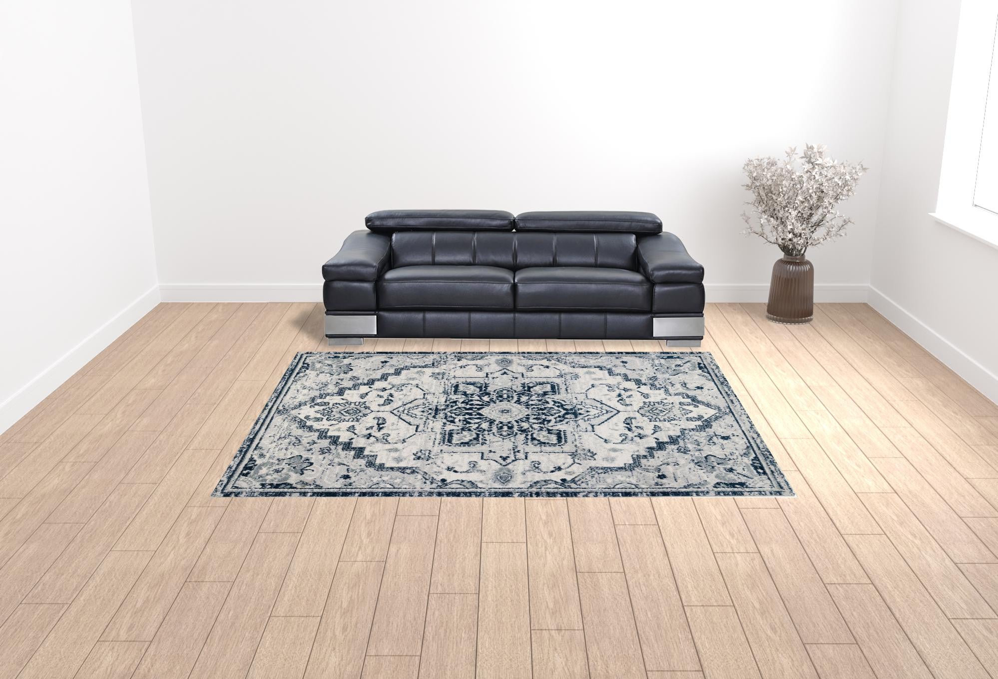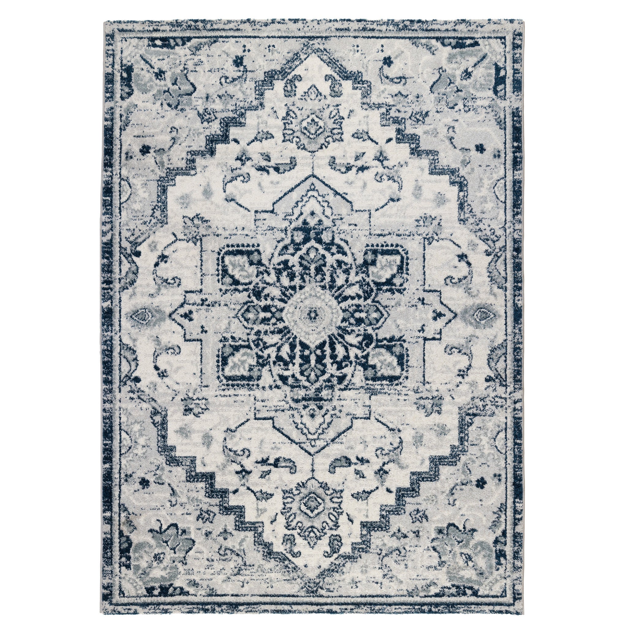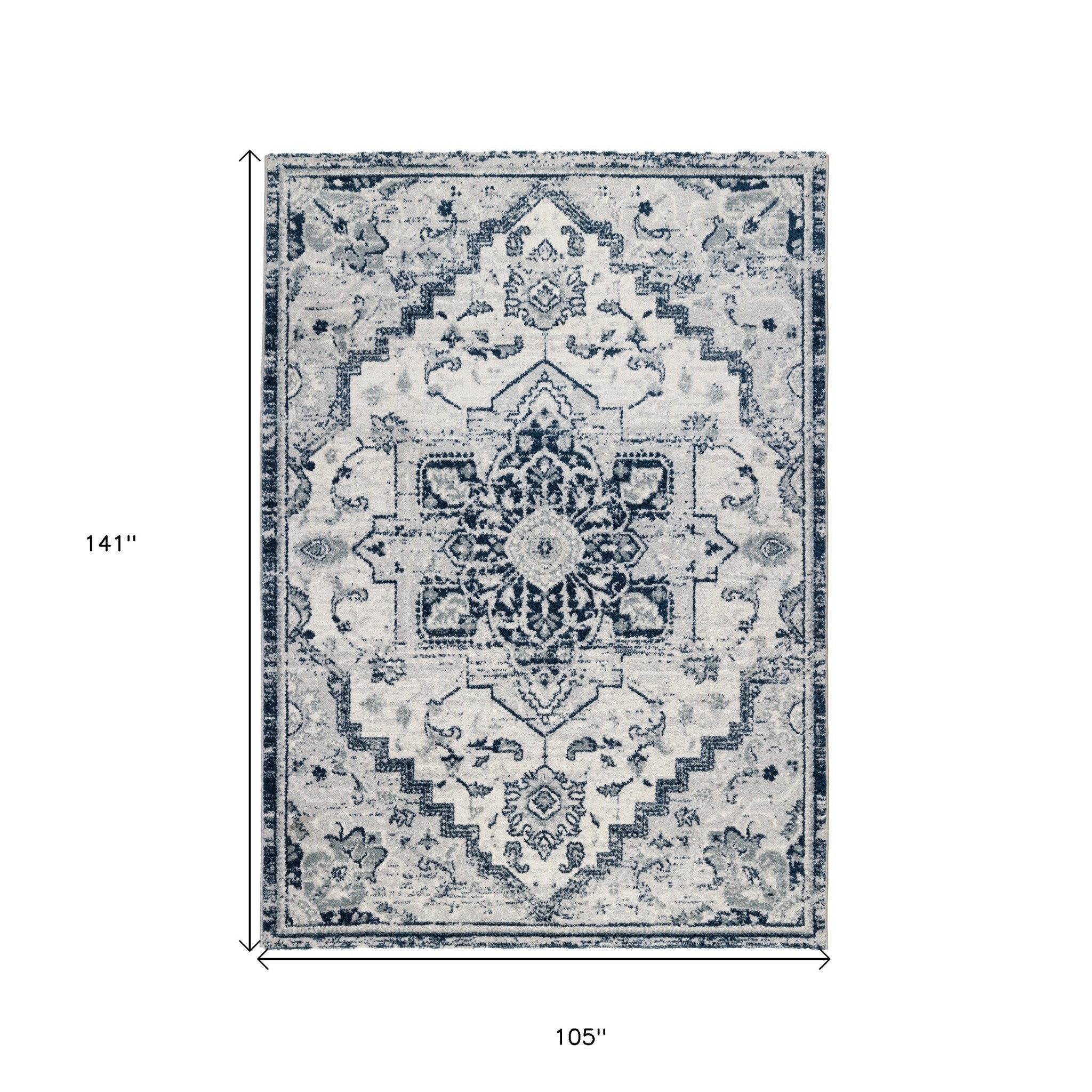 Set an inviting tone in your space with this 9 feet x 12 feet dark blue medallion...