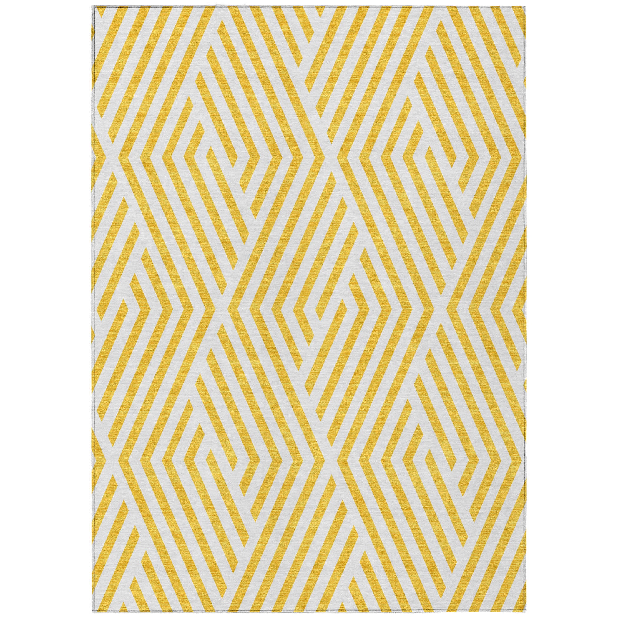 9' X 12' Gold and White Geometric Washable Non Skid Indoor Outdoor Area Rug