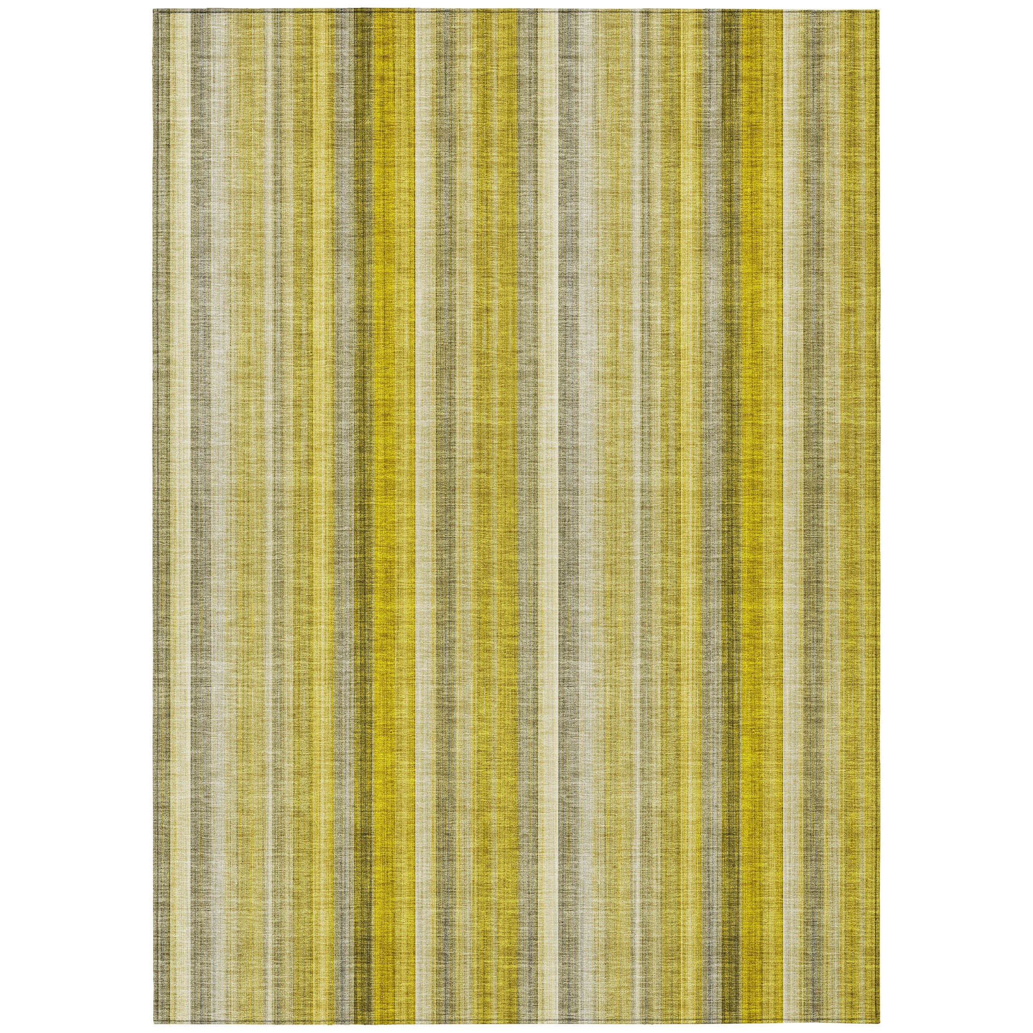 9' X 12' Gold Striped Washable Non Skid Indoor Outdoor Area Rug